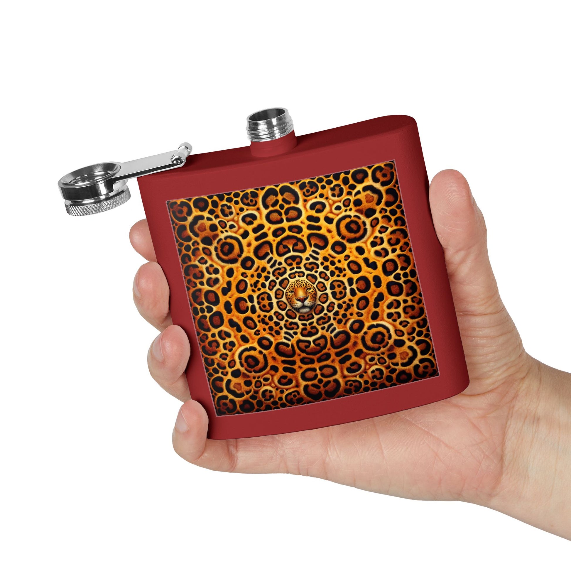 Tropical Stainless Steel 6 oz. Flask, Many Colors – Kaleidoscope Jaguar Spots