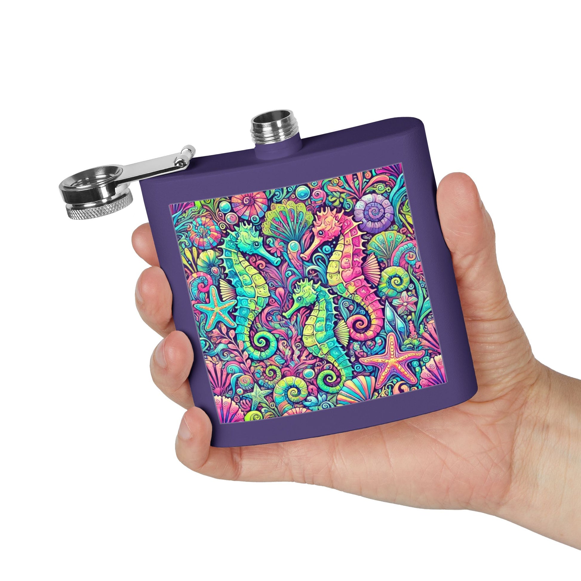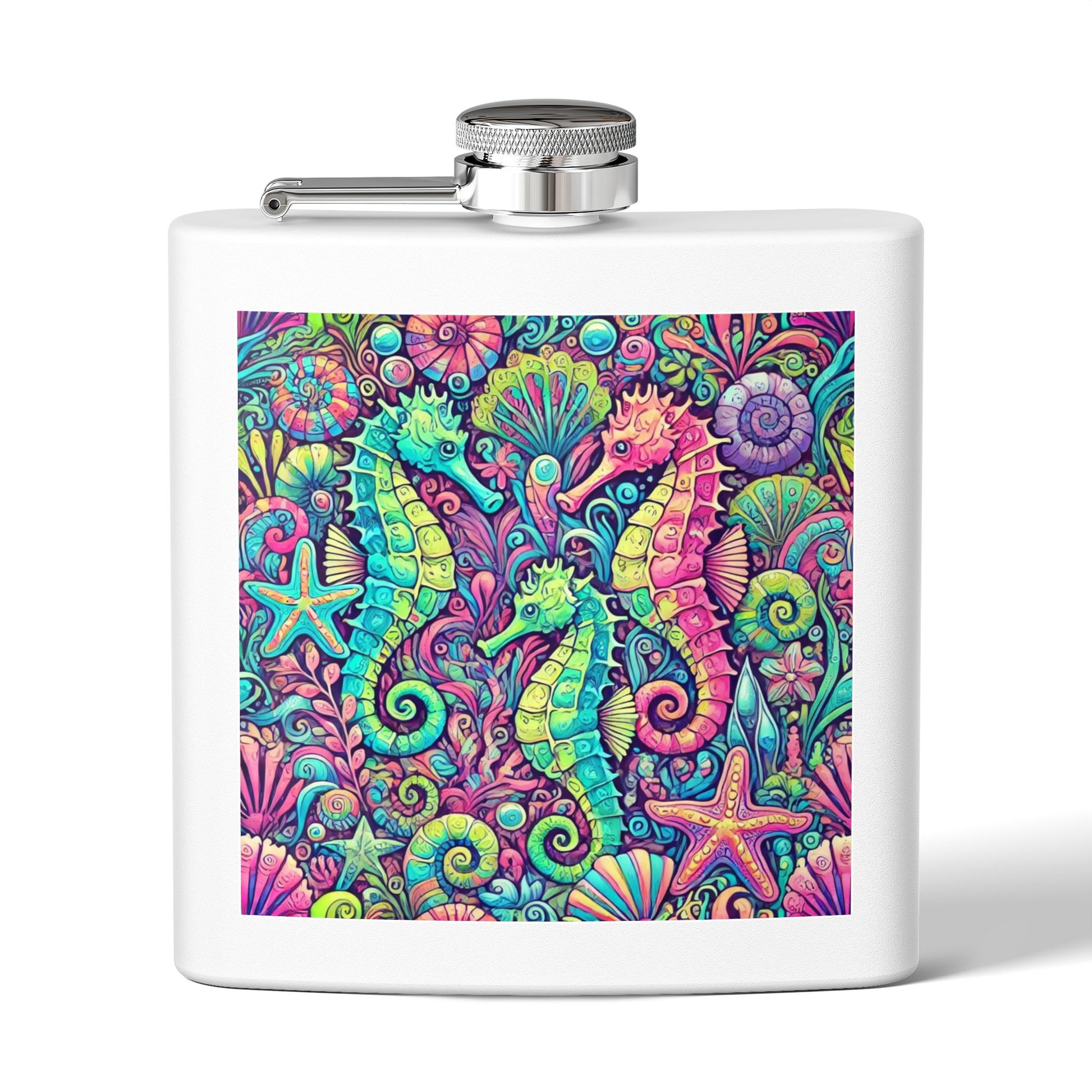 Tropical Stainless Steel 6 oz. Flask, Many Colors – Seahorse Trio