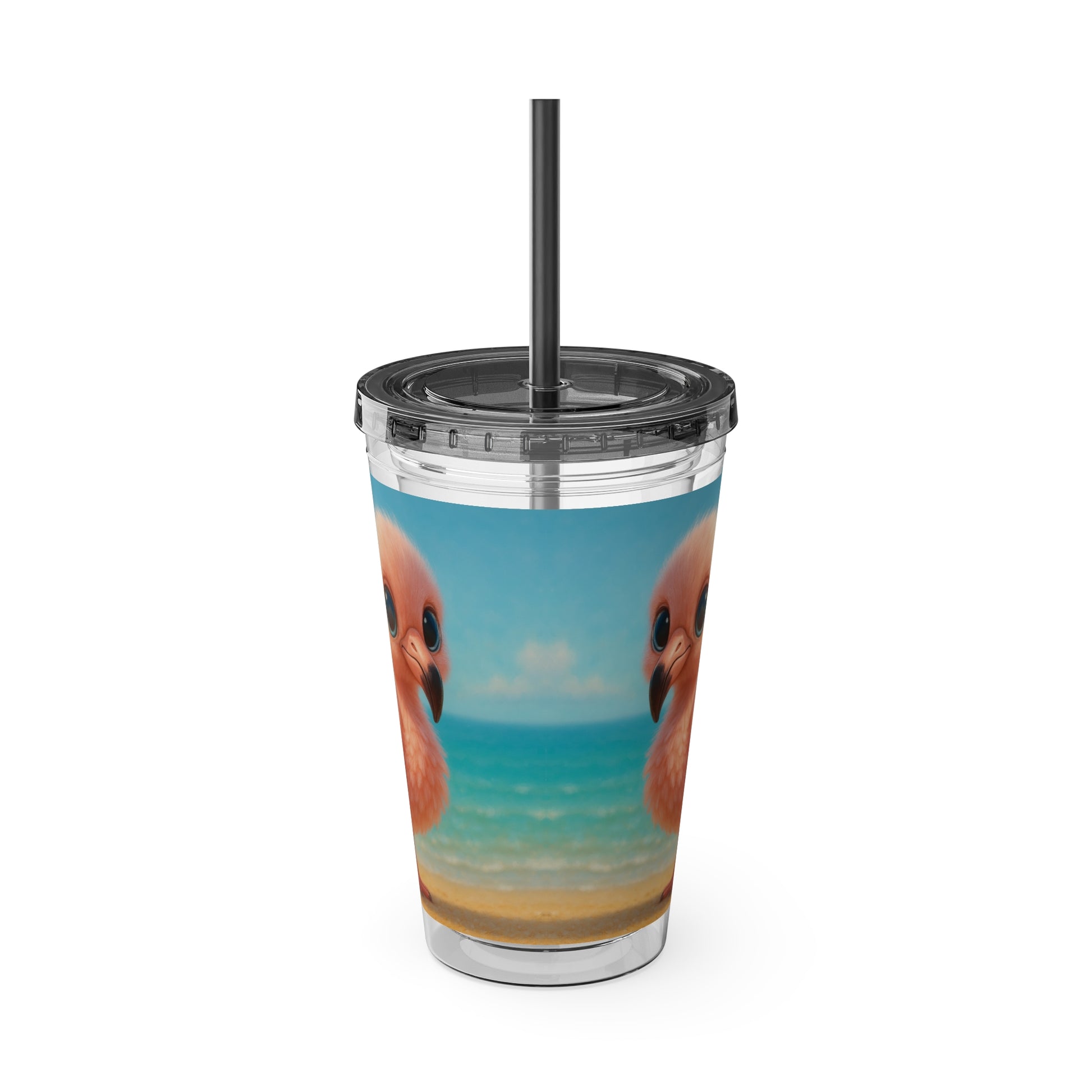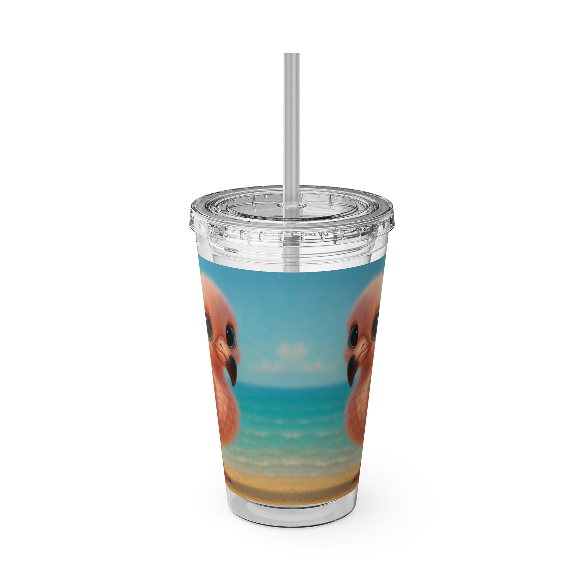 Tropical Tumbler with Straw | 16oz Colorful Travel Cup / Baby Flamingo