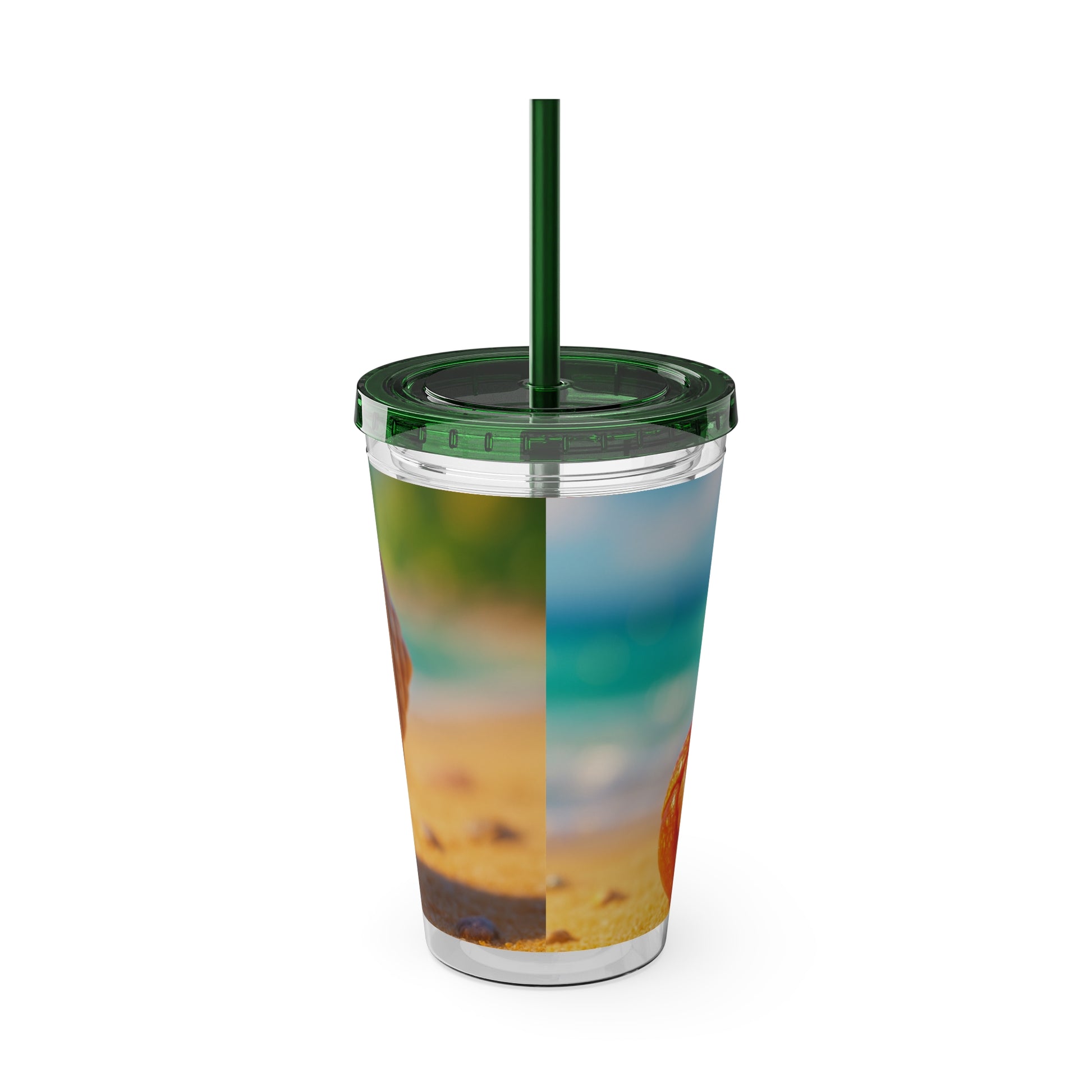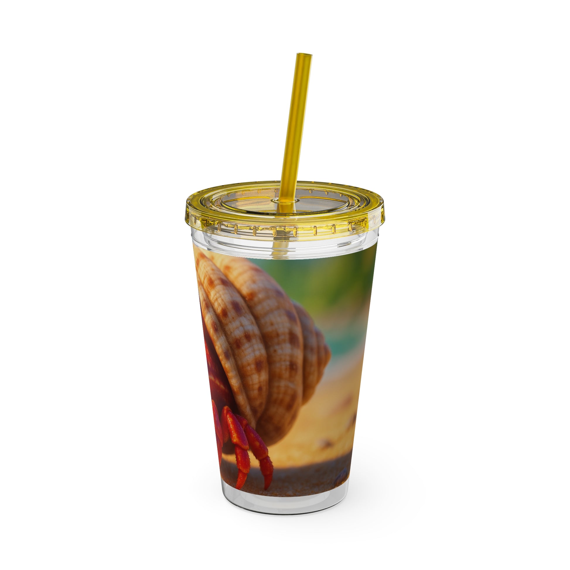 Tropical Tumbler with Straw | 16oz Colorful Travel Cup / Baby Hermit Crab