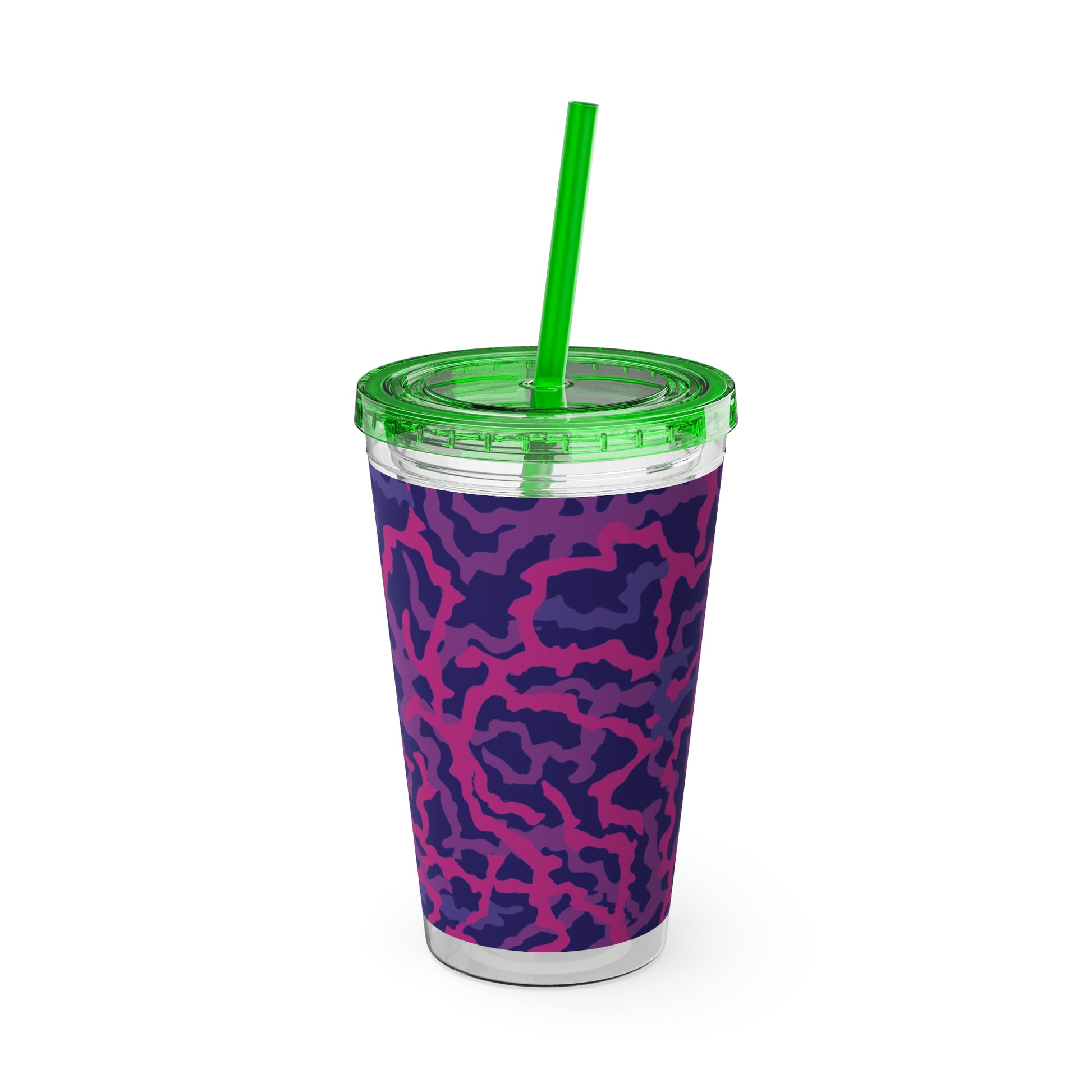 Tropical Tumbler with Straw | 16oz Colorful Travel Cup / Coral Threads, Heatwave