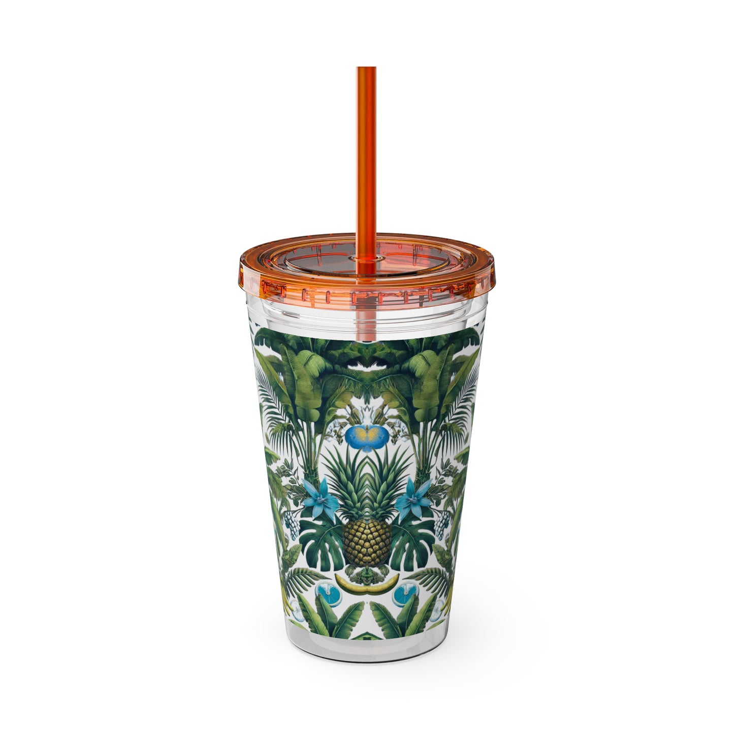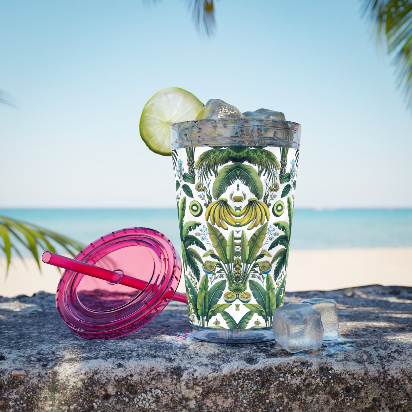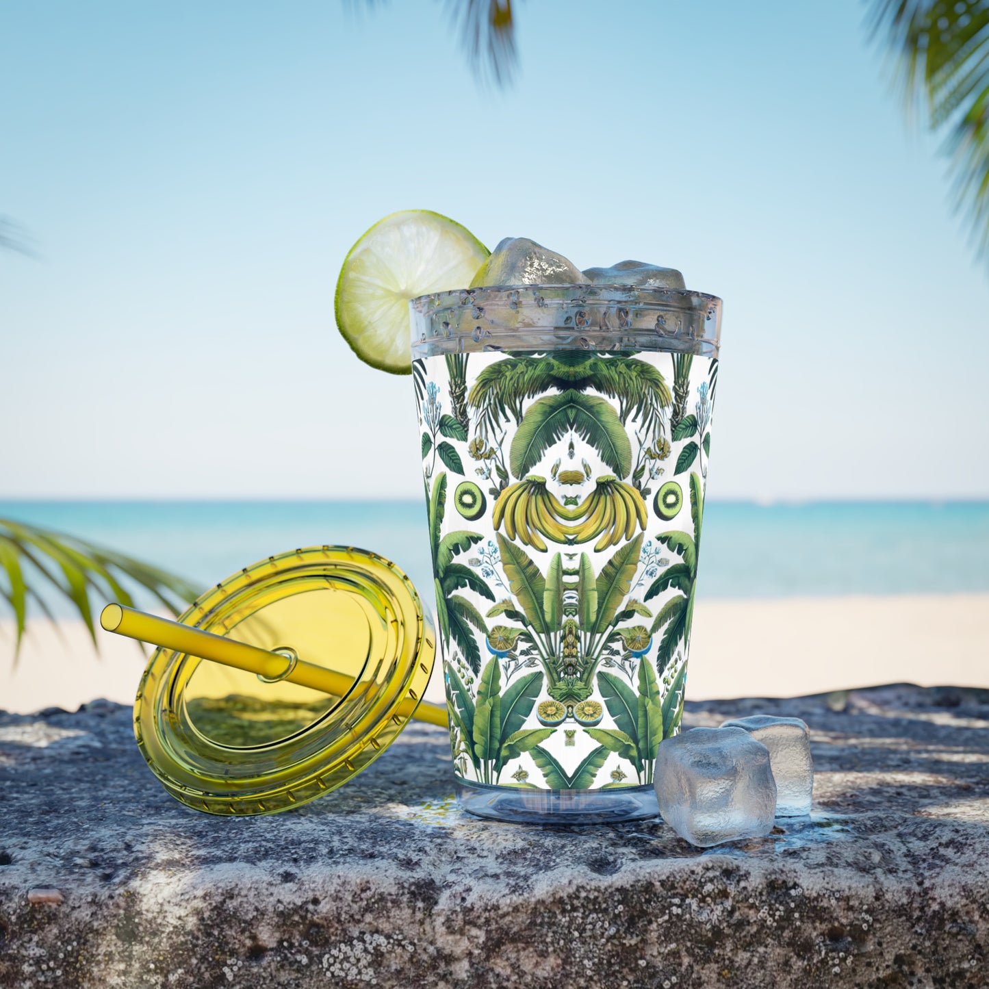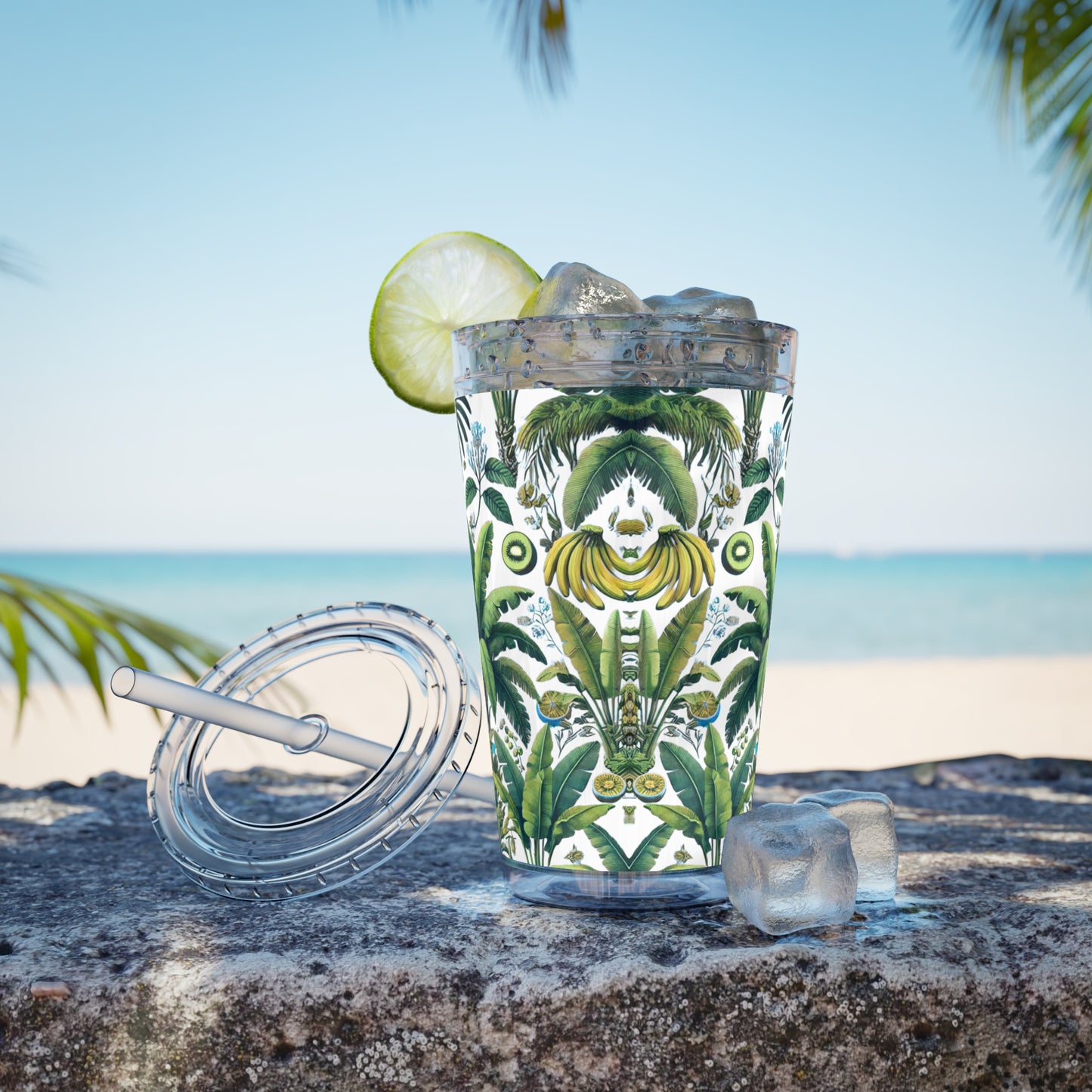 Tropical Tumbler with Straw | 16oz Colorful Travel Cup / More Tropical Fruit, White