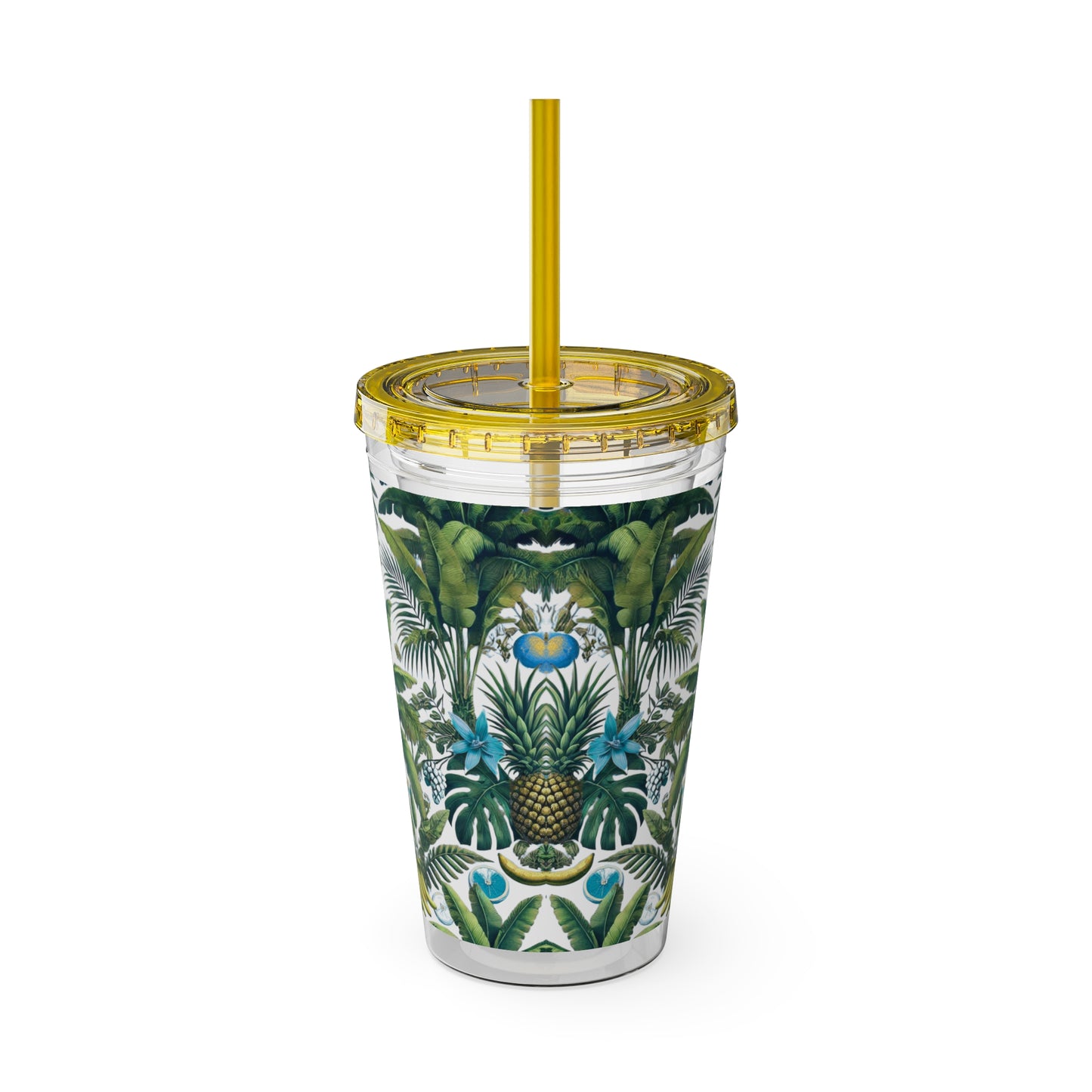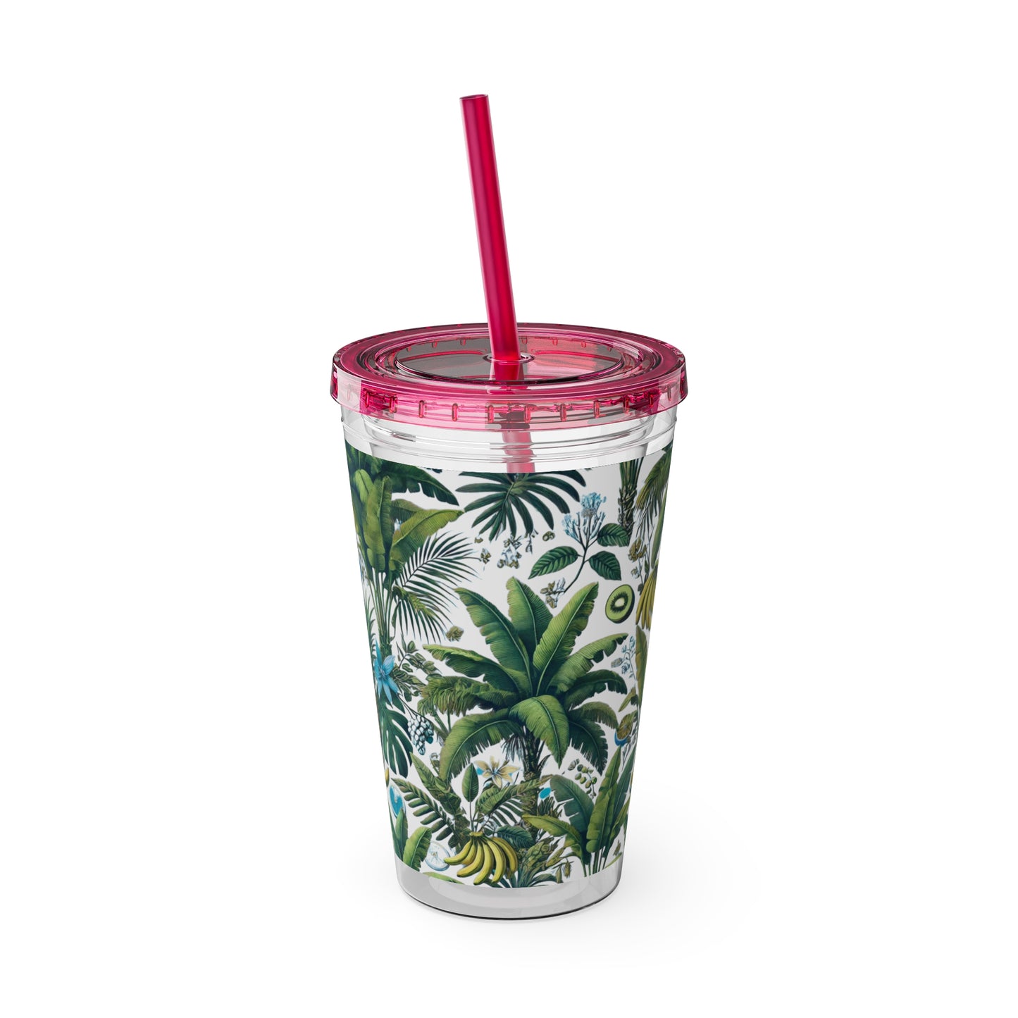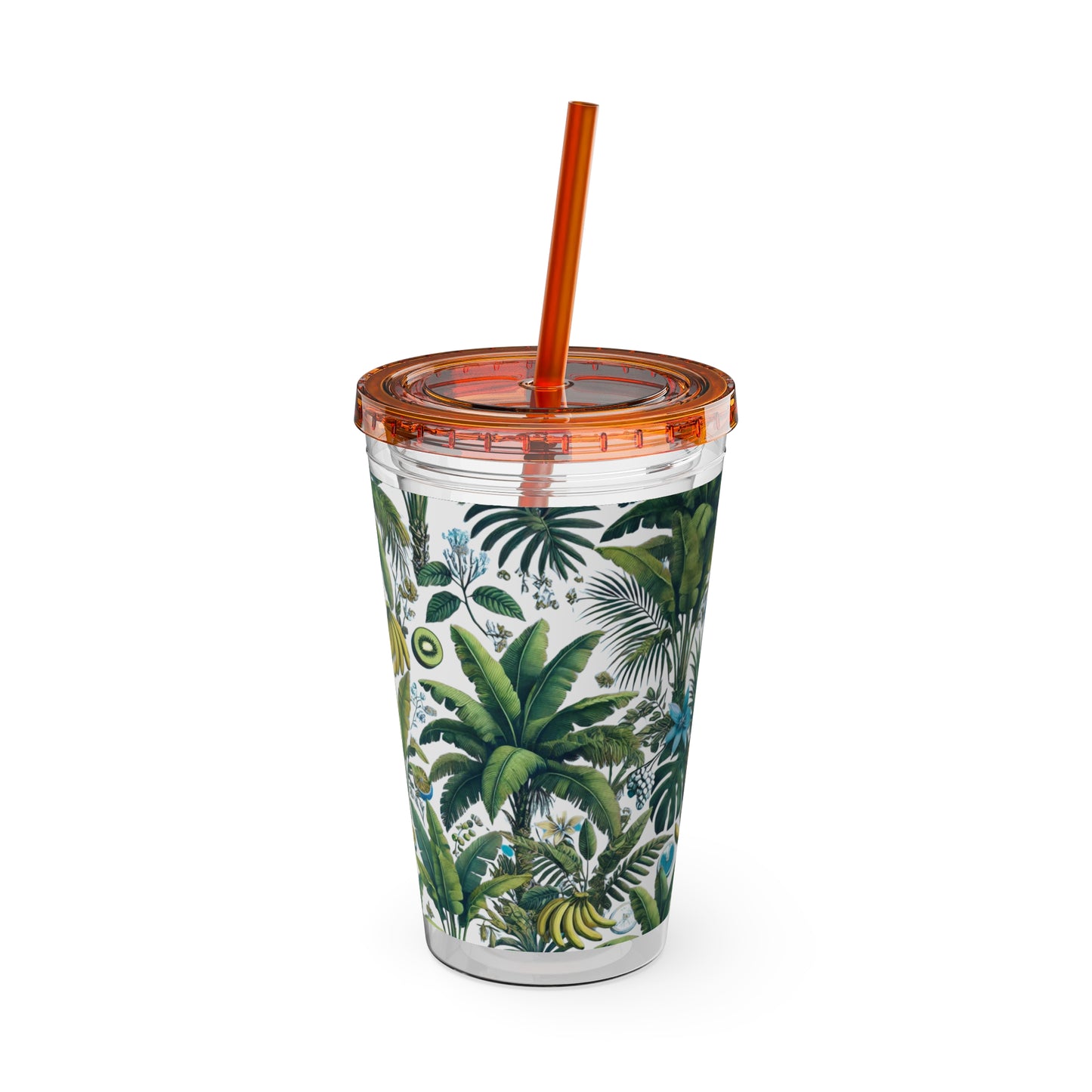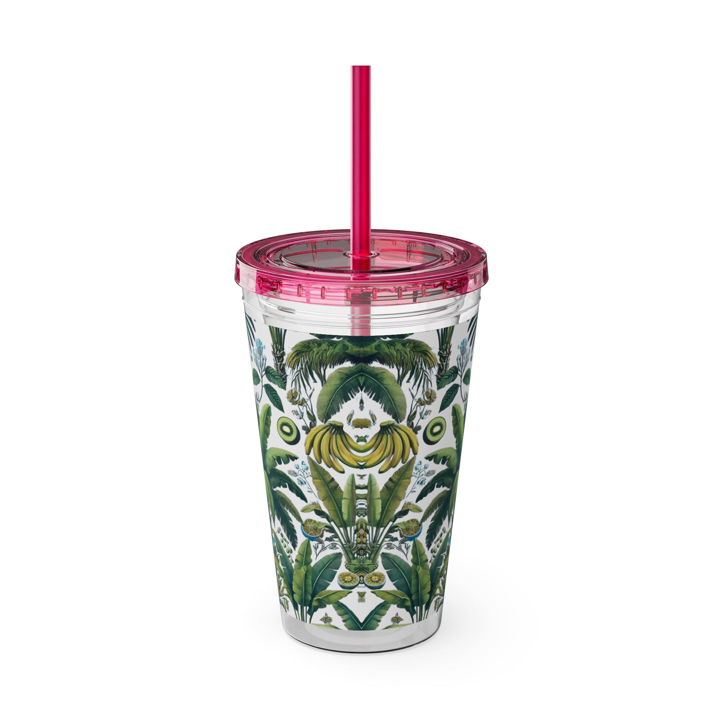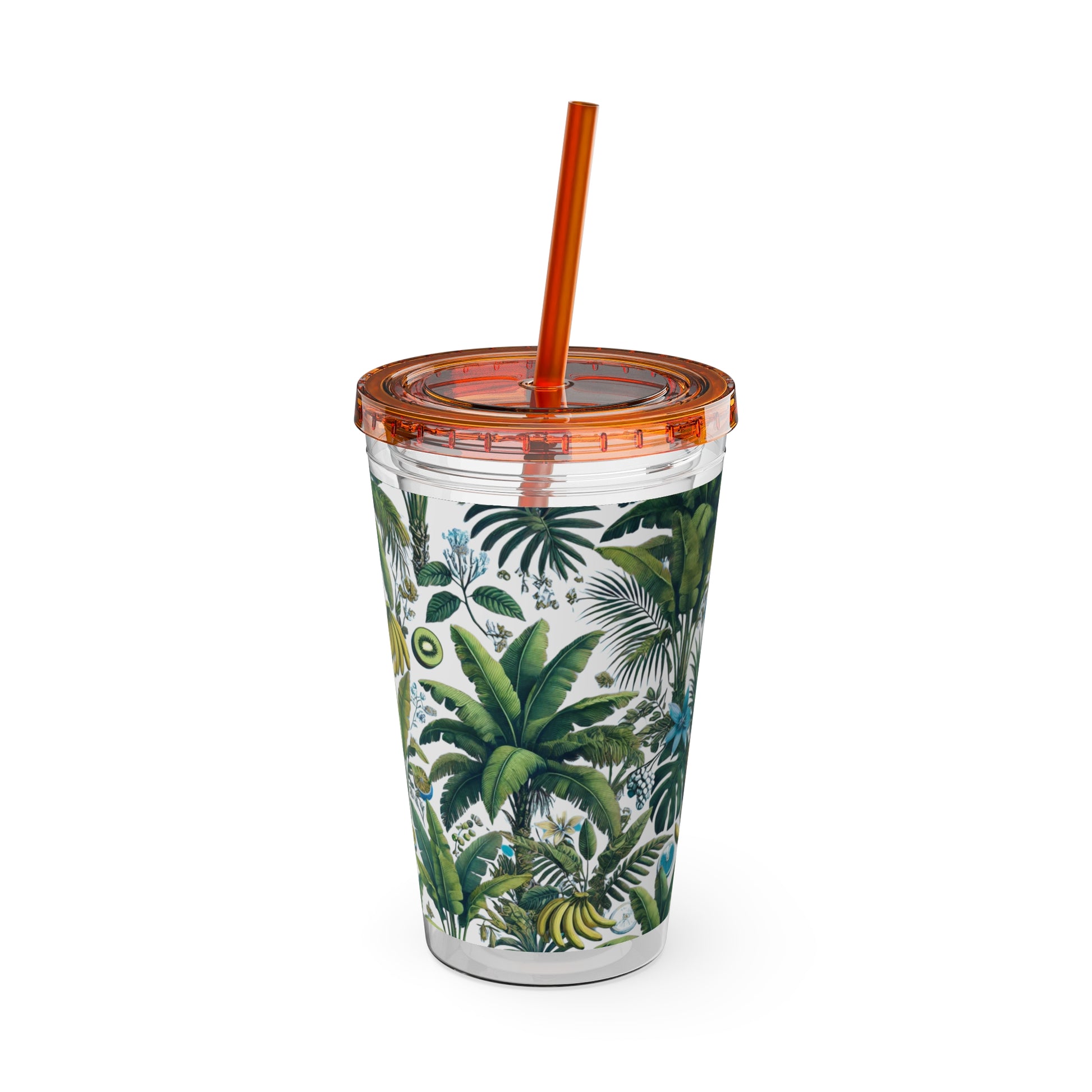 Tropical Tumbler with Straw | 16oz Colorful Travel Cup / More Tropical Fruit, White