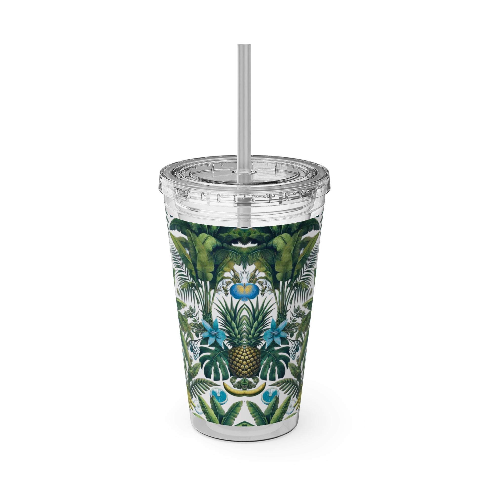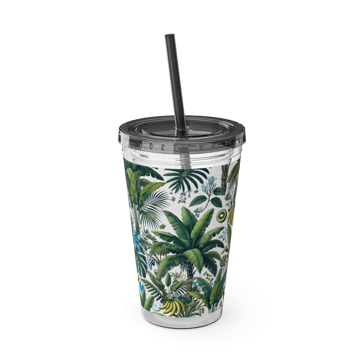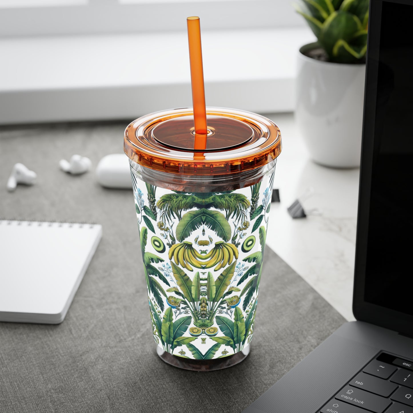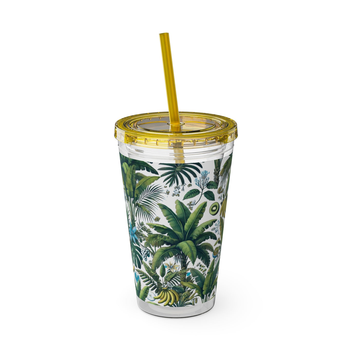 Tropical Tumbler with Straw | 16oz Colorful Travel Cup / More Tropical Fruit, White