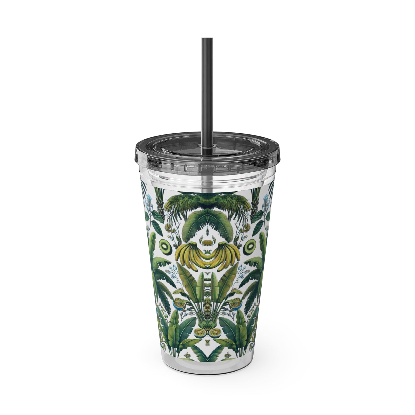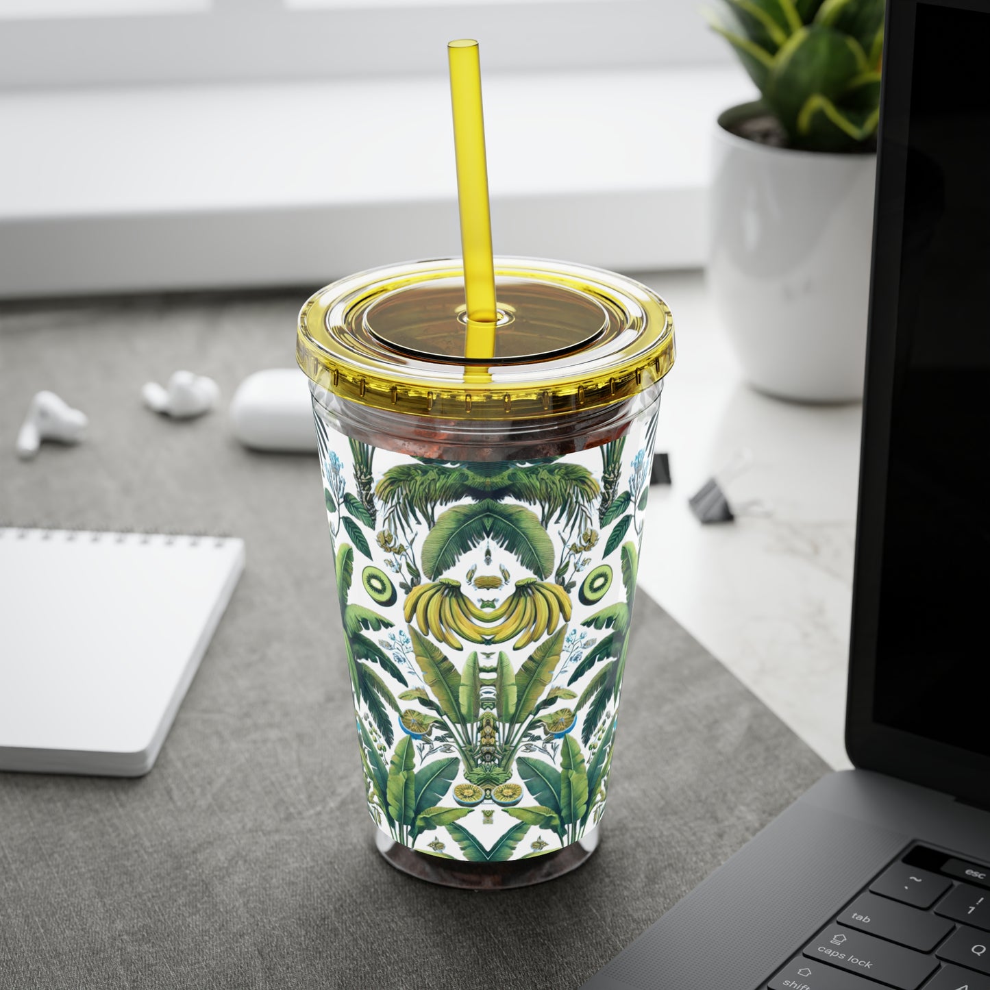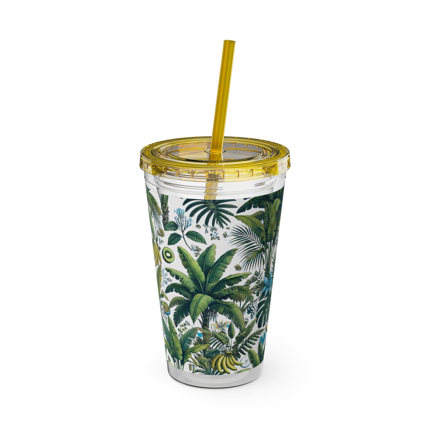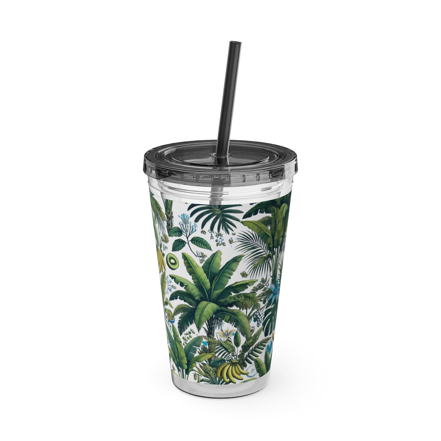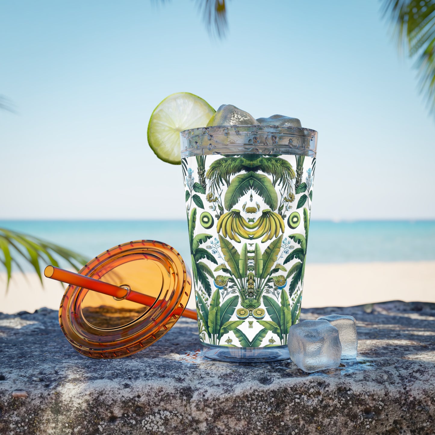 Tropical Tumbler with Straw | 16oz Colorful Travel Cup / More Tropical Fruit, White