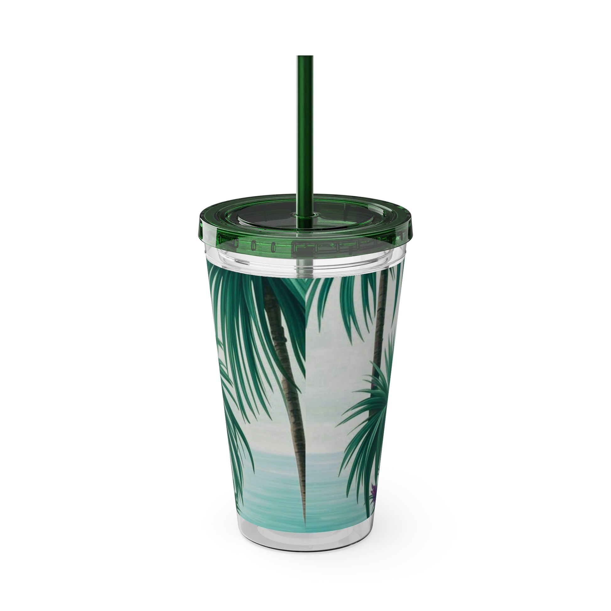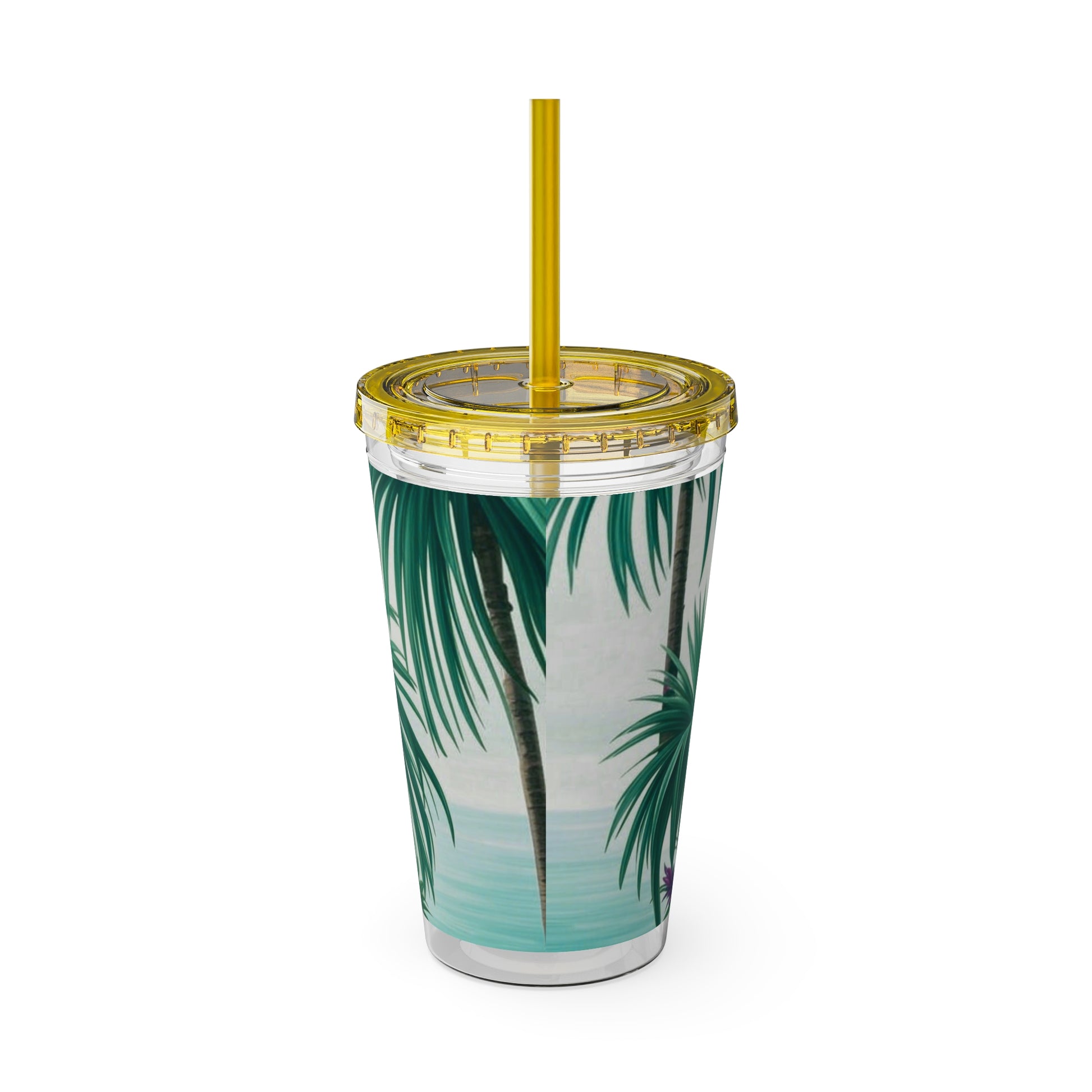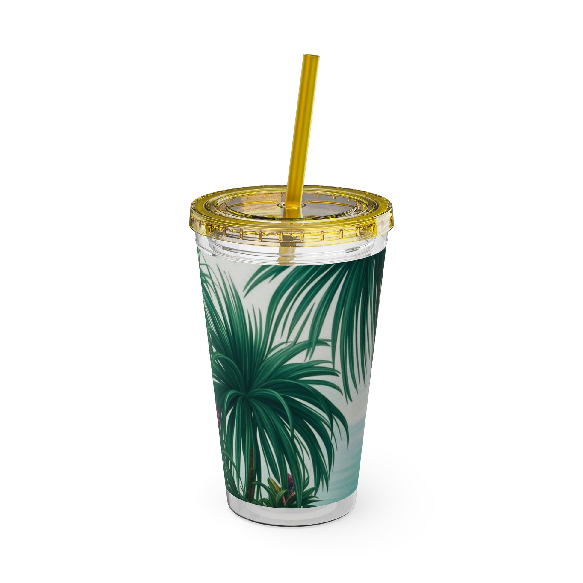 Tropical Tumbler with Straw | 16oz Colorful Travel Cup / Tiny Palm Island