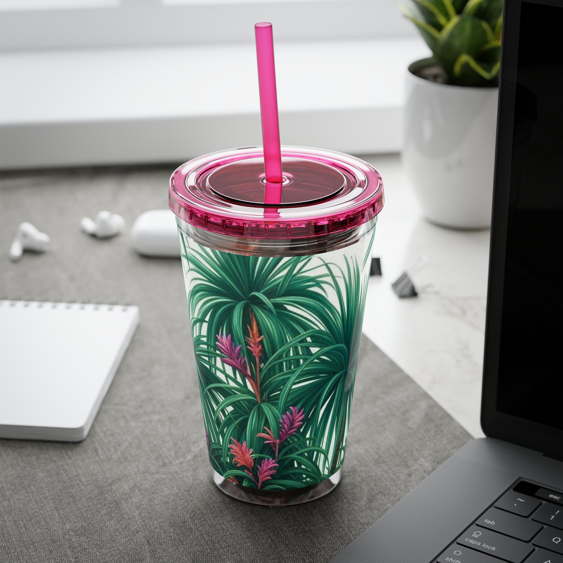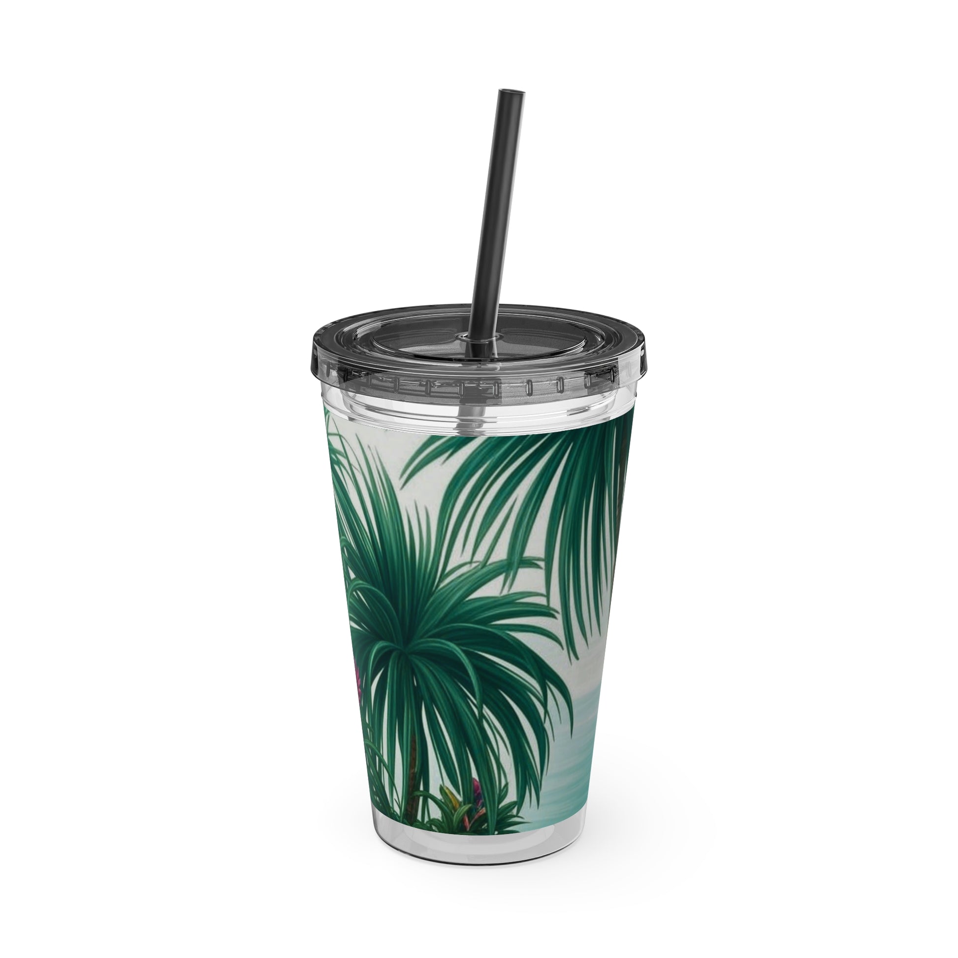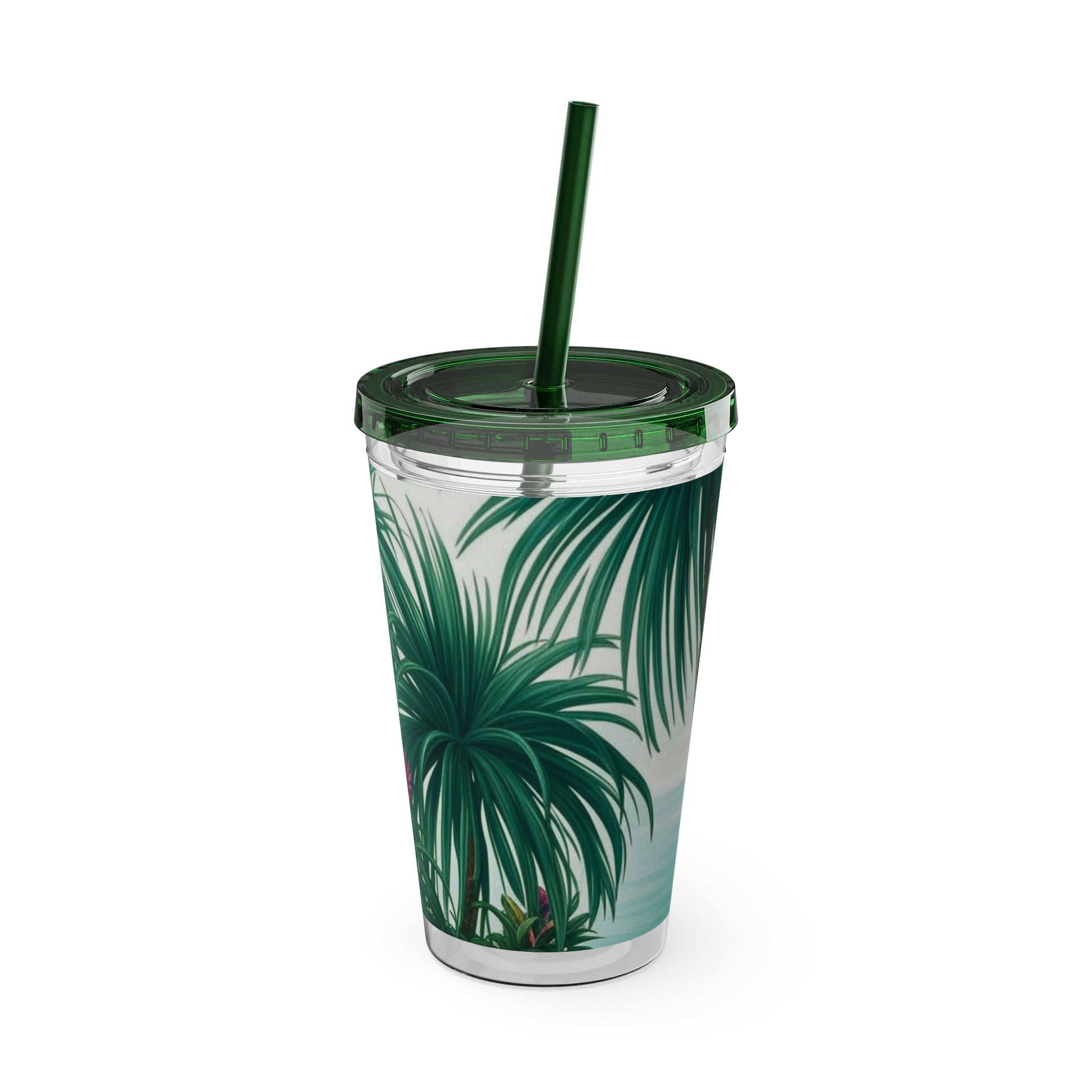 Tropical Tumbler with Straw | 16oz Colorful Travel Cup / Tiny Palm Island