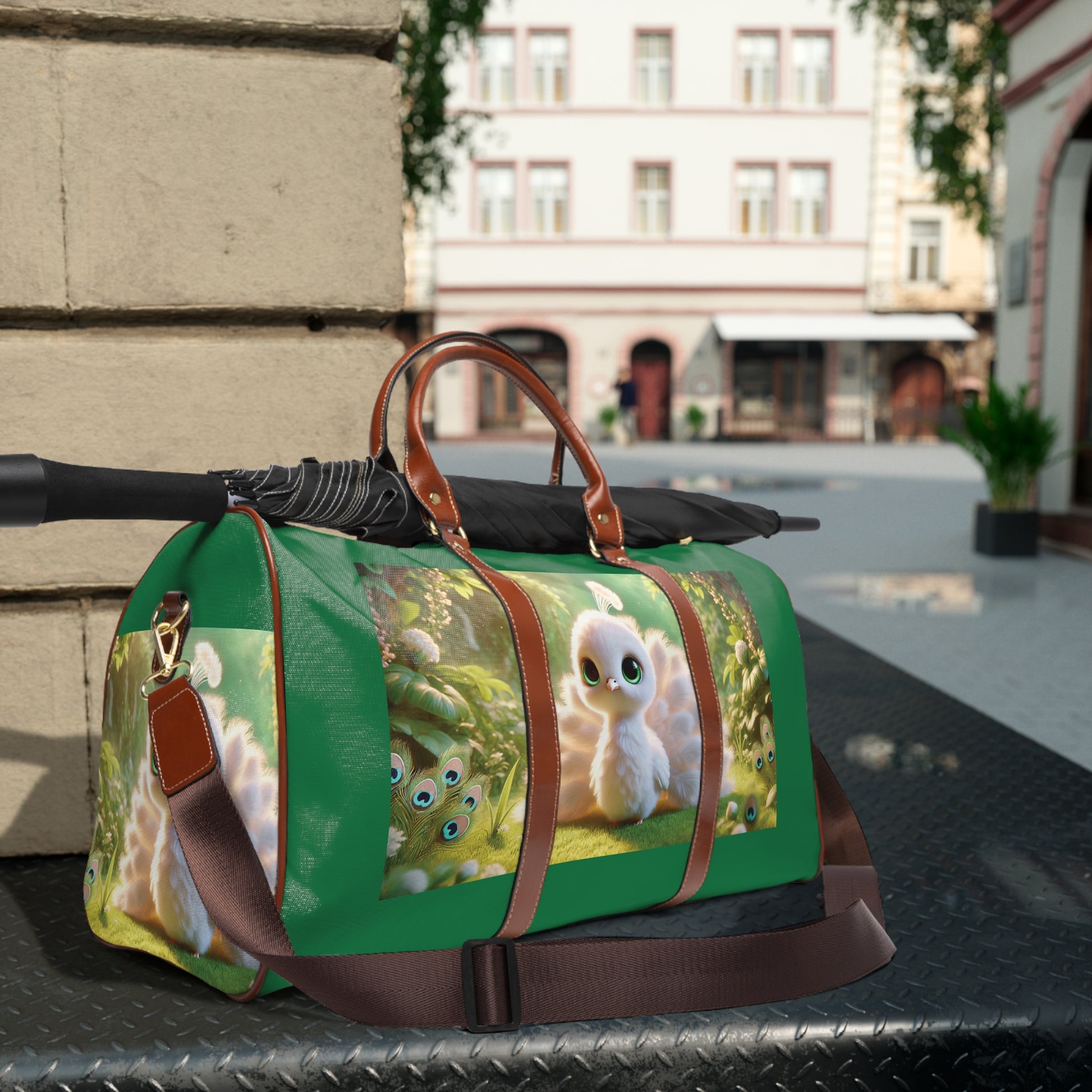 Introducing our stylish Waterproof Travel Bag, designed for adventurers and trendsetters alike. This eye-catching tropical bag features vibrant colors and a gorgeous white baby peacock that bring a fun vibe to any journey. Whether you're heading to the gym, a weekend getaway, or an exciting travel expedition, this bag fits seamlessly into your active lifestyle. Ideal for anyone who loves exploring new places or just enjoys a touch of flair in their everyday routine, it's perfect for vacations, day trips, or as a thoughtful gift for the wanderlust in your life.