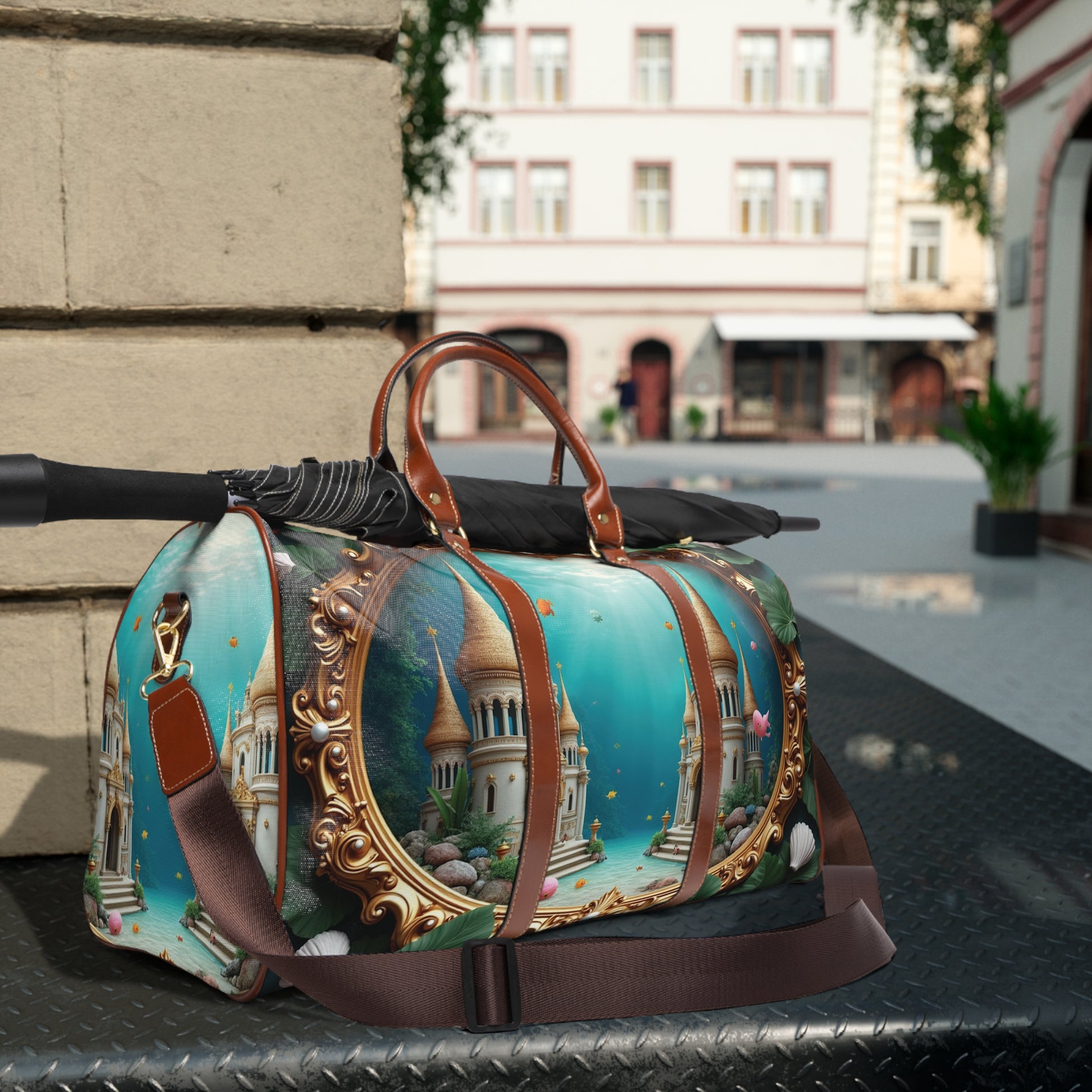Introducing our stylish Waterproof Travel Bag, designed for adventurers and trendsetters alike. This eye-catching tropical bag features vibrant colors that bring a fun vibe to any journey, created with design of a fantasy mermaid palace. Whether you're heading to the gym, a weekend getaway, or an exciting travel expedition, this bag fits seamlessly into your active lifestyle. Ideal for anyone who loves exploring new places or just enjoys a touch of flair in their everyday routine, it's perfect for vacations, day trips, or as a thoughtful gift for the wanderlust in your life.