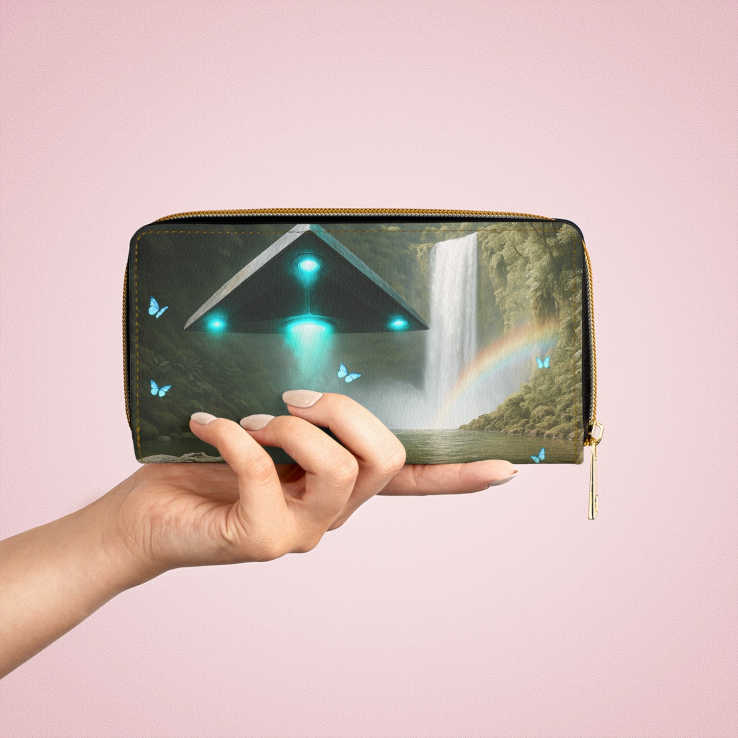 This stunning Zipper Wallet is perfect for those who love to make a bold statement with their accessories. With its vibrant colors inspired by UFO and tropical motifs, it adds a dash of fun to any outfit. Made from 100% Faux leather, it feels luxurious while being eco-friendly. This wallet is not just a pretty face; it’s designed for practicality with ample pockets for cash, credit cards, coins, and even a checkbook. Ideal for daily use or special occasions, it fits seamlessly into the lives of students, professionals, and anyone who appreciates unique style. Celebrate birthdays, graduations, or simply treat yourself to this chic accessory that combines fashion with functionality.
