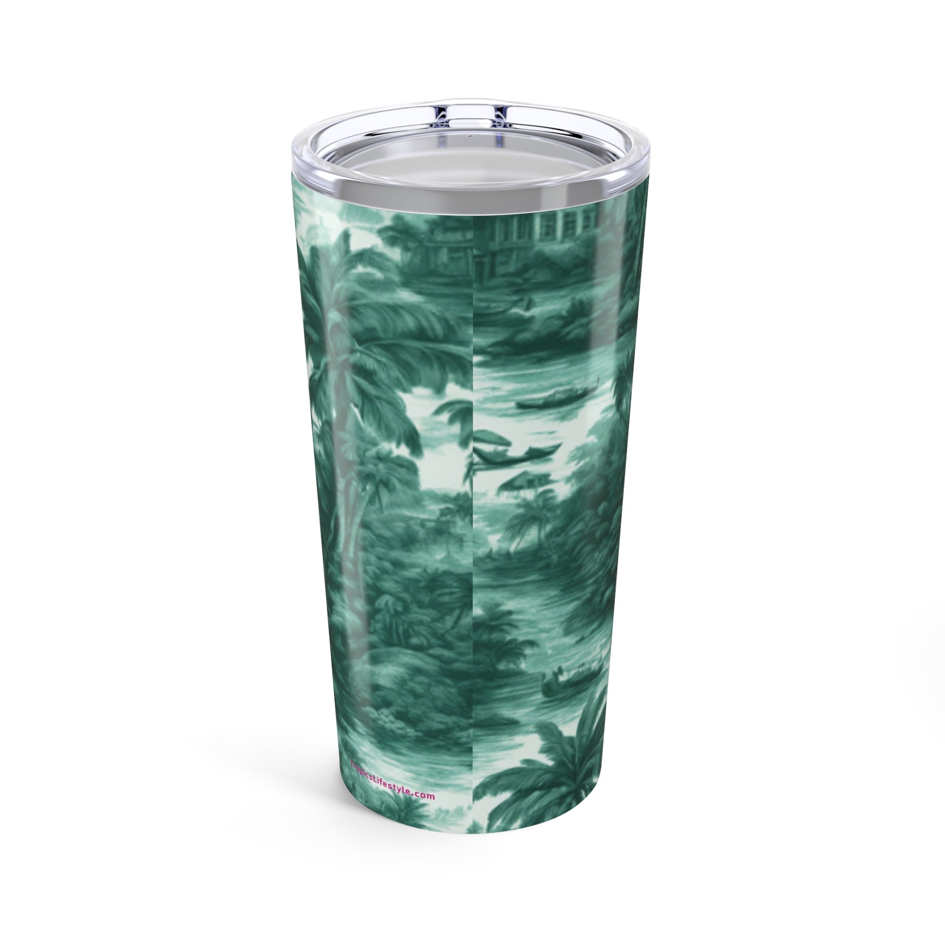 20oz Tropical Glossy Tumbler -Tropical Toile, Evergreen
