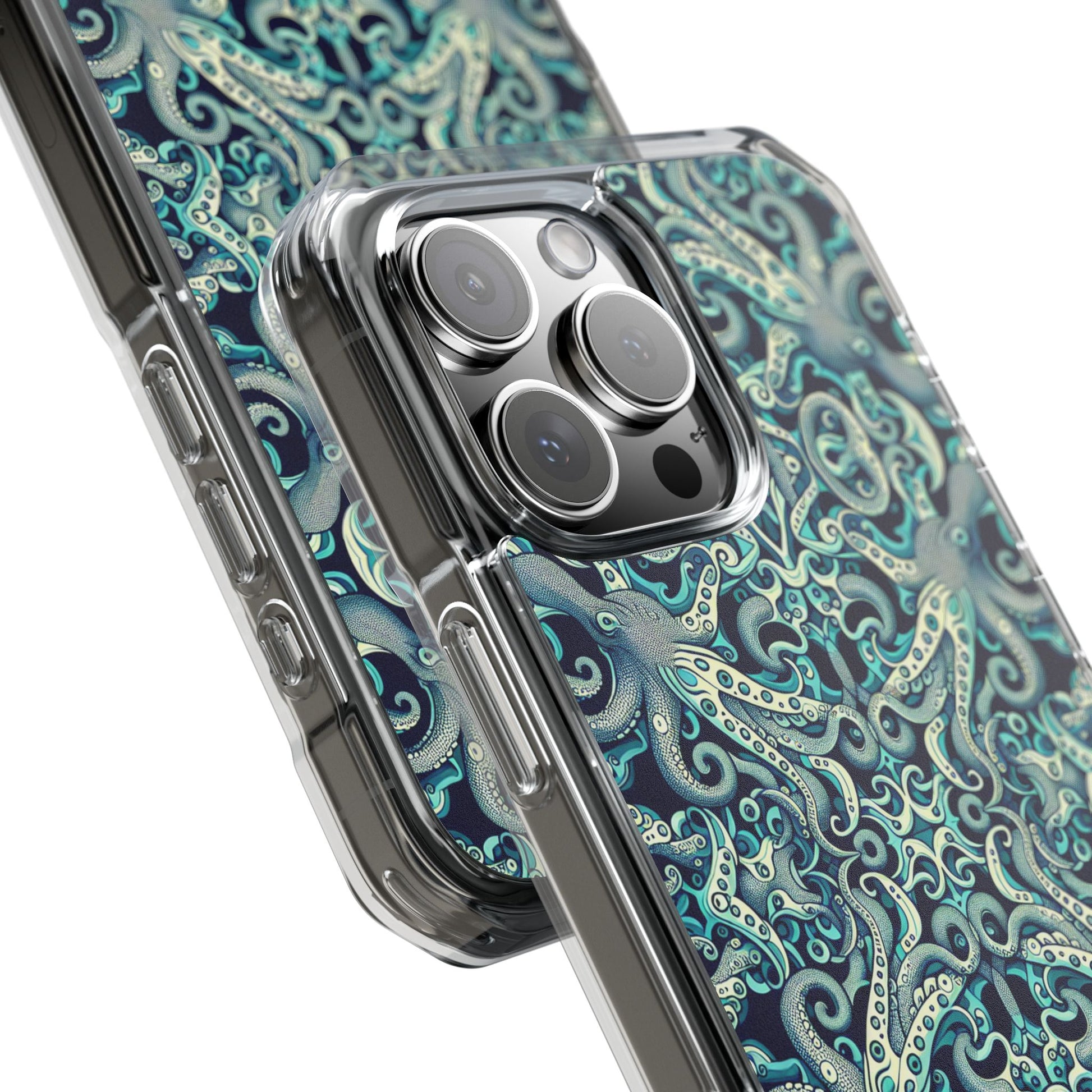 Twisted Aqua Octopus Magnetic Clear Phone Case, Many Models