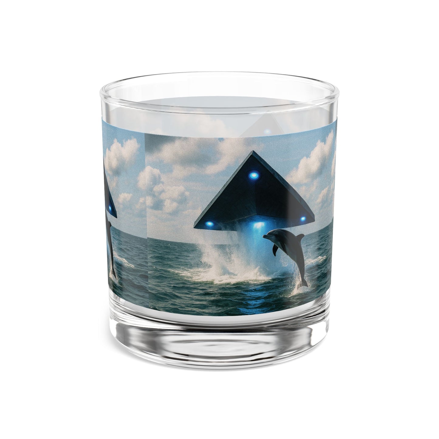 UFO and Dolphin Rocks Glass - 10oz Colorful Island Design