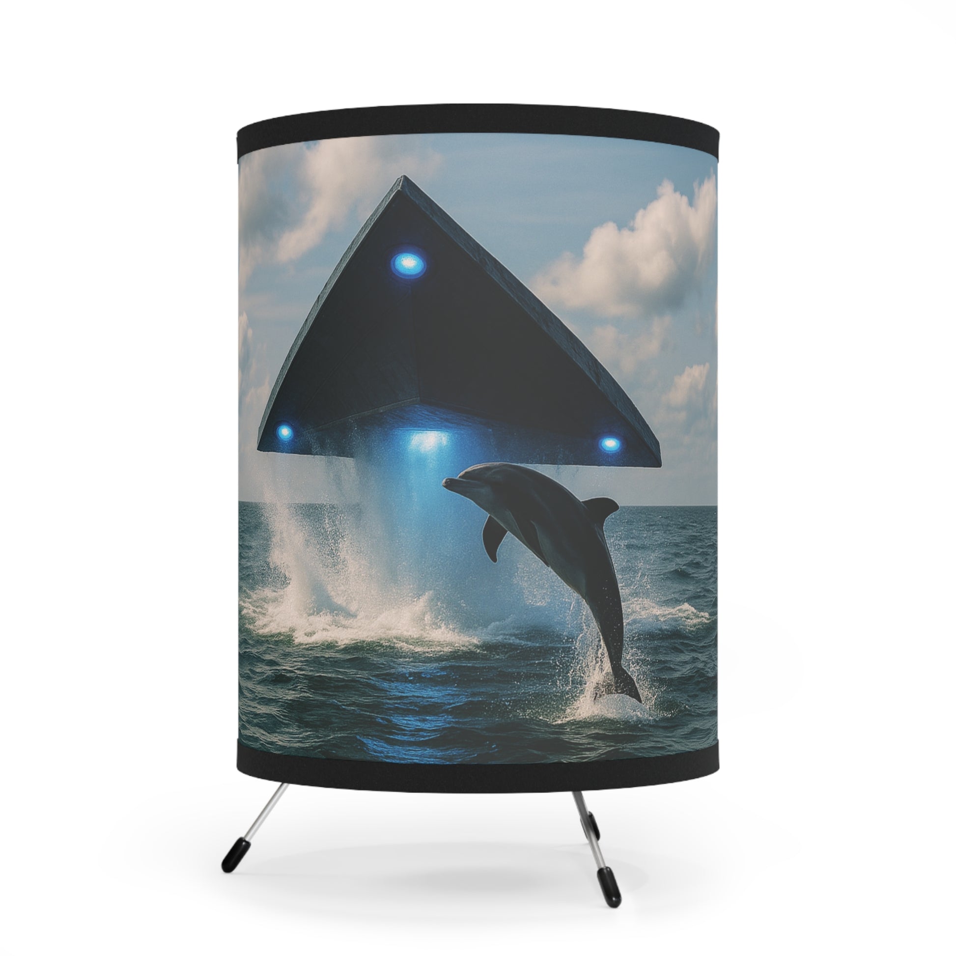 UFO and Dolphin Tripod Lamp with Artistic High-Res Shade - Perfect for Home Décor
