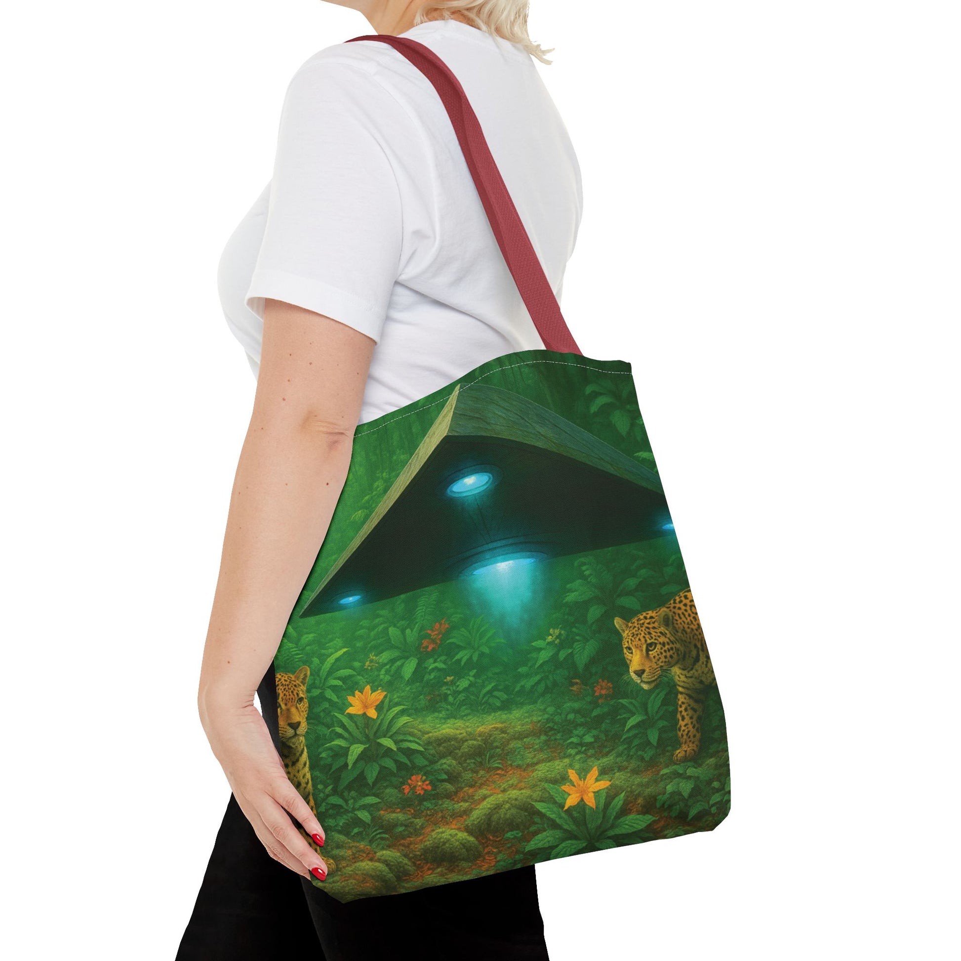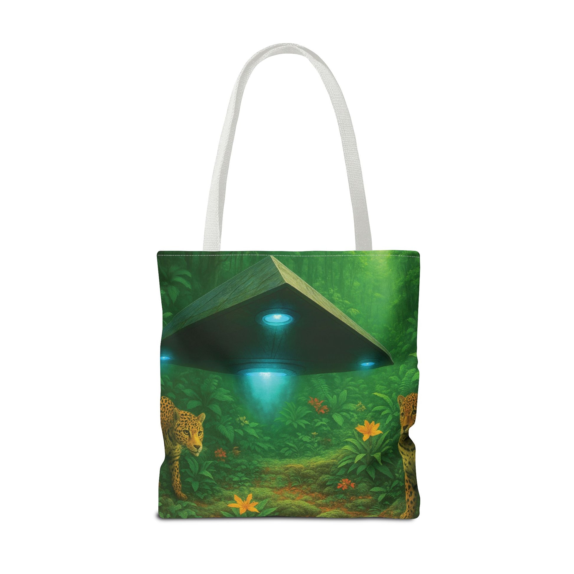 Introducing this vibrant Tote Bag, perfect for expressing your unique style while staying practical. The rainforest UFO and Jaguars design brings an atmosphere of freshness and adventure, making it an ideal companion for city strolls, beach days, or shopping trips. This bag fits seamlessly into the lifestyle of eco-conscious individuals and nature lovers, offering both functionality and flair. It’s a great gift for birthdays, holidays, or any celebration where you want to impress loved ones with a thoughtful, stylish choice. Elevate your everyday adventures with this indispensable accessory, perfect for those who appreciate both aesthetics and sustainability.