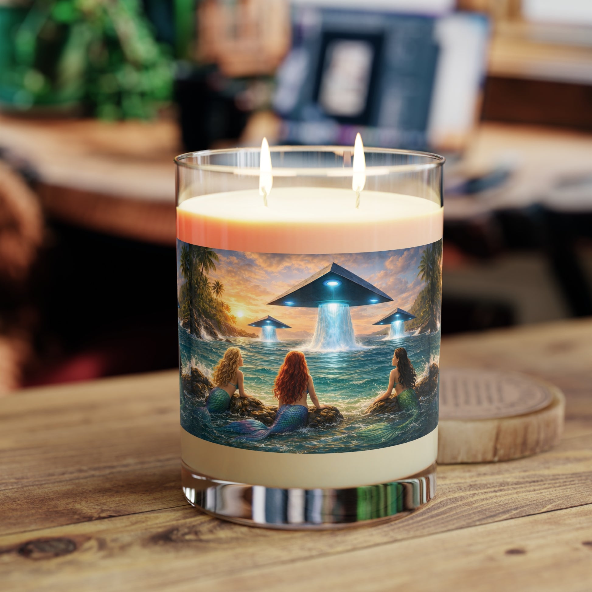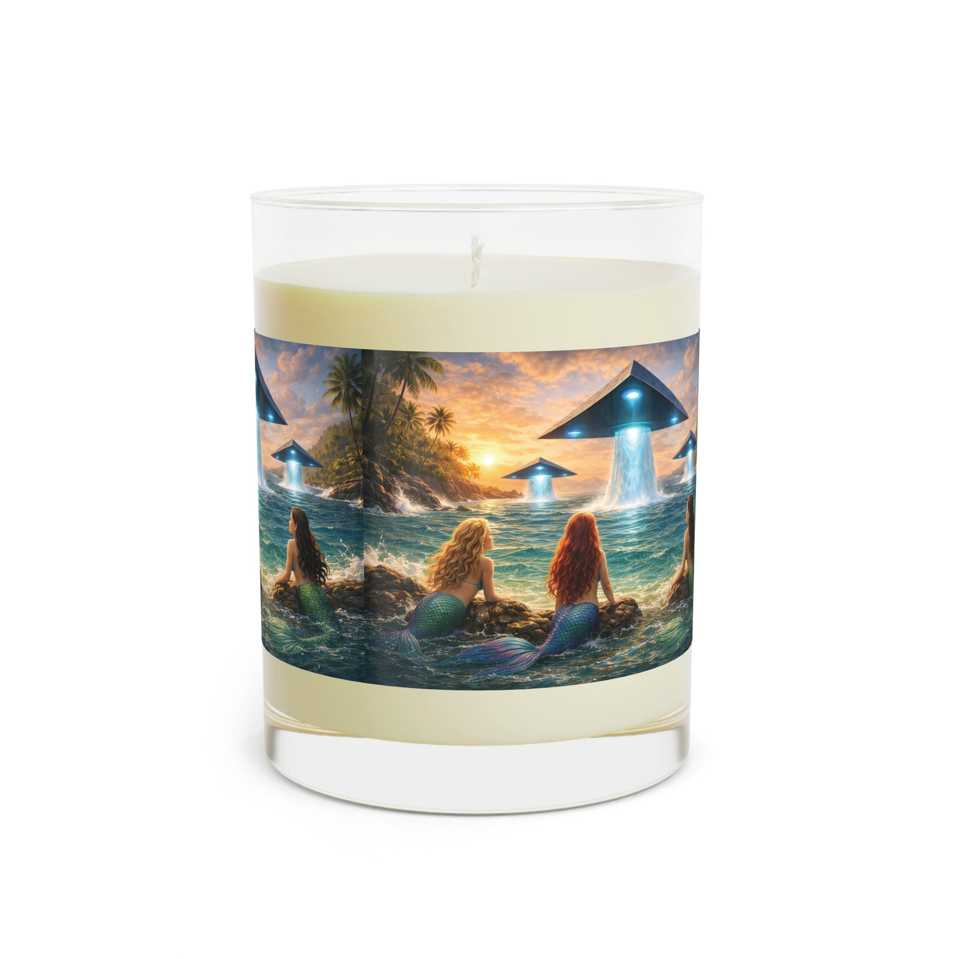 UFOs & Mermaid Scented Candle - 11oz Full Glass, Tropical Decor