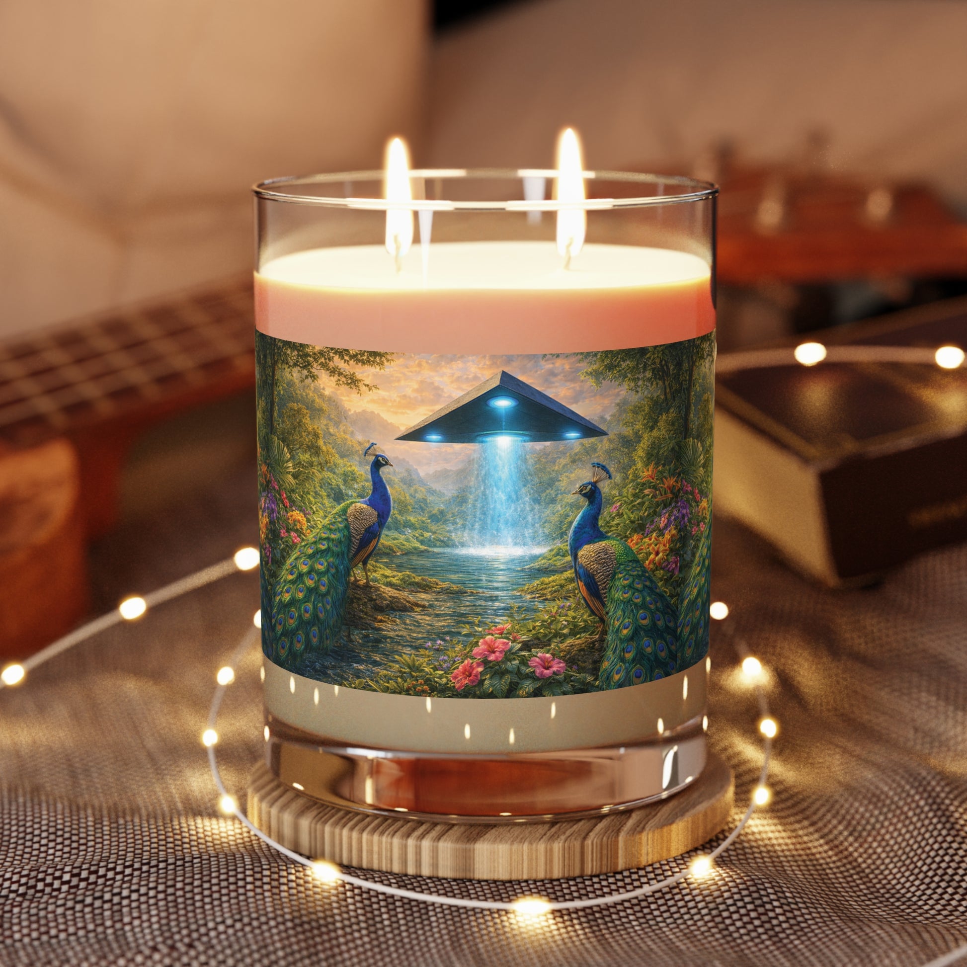UFOs & Peacocks Scented Candle - 11oz Full Glass, Tropical Decor