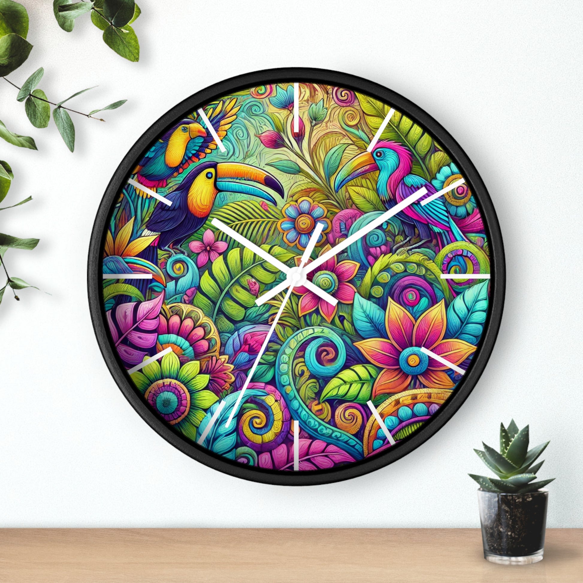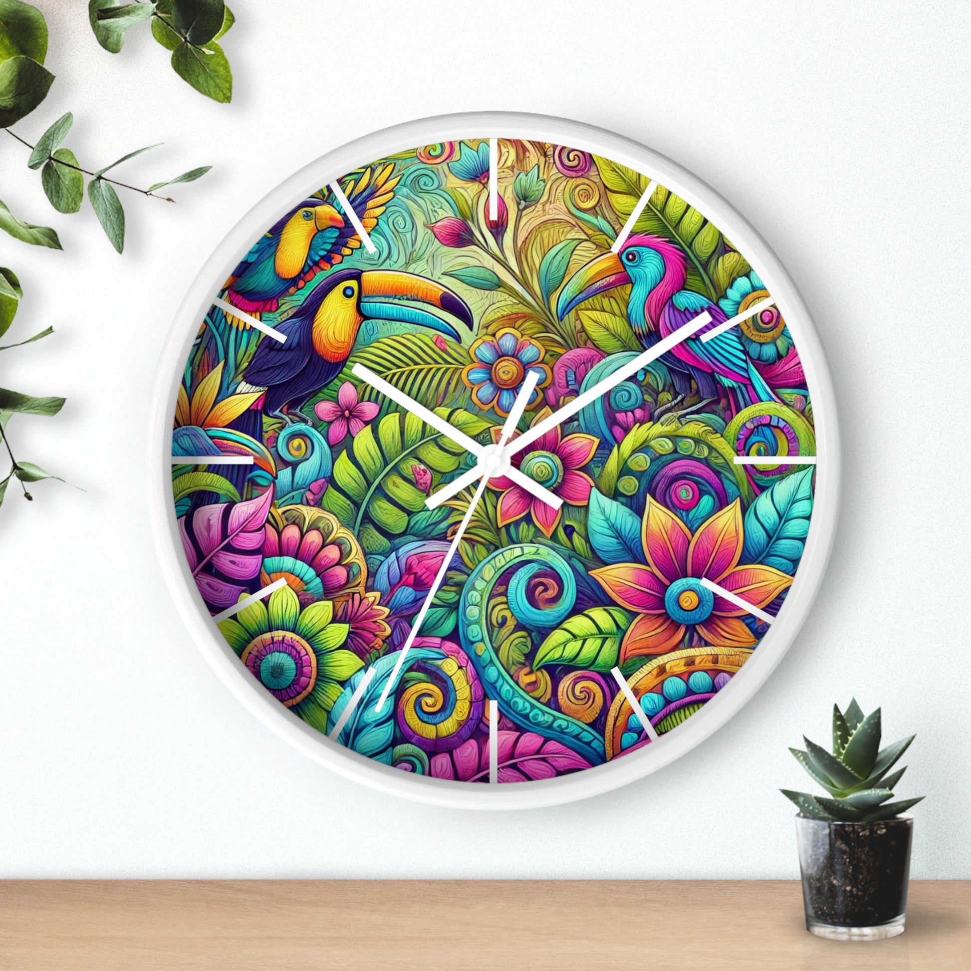 Every second counts! An exciting and practical accent in any room, this unique high quality Wall Clock serves as a statement piece, creating a personalized environment. Features our original, exclusive design of the rainforest.