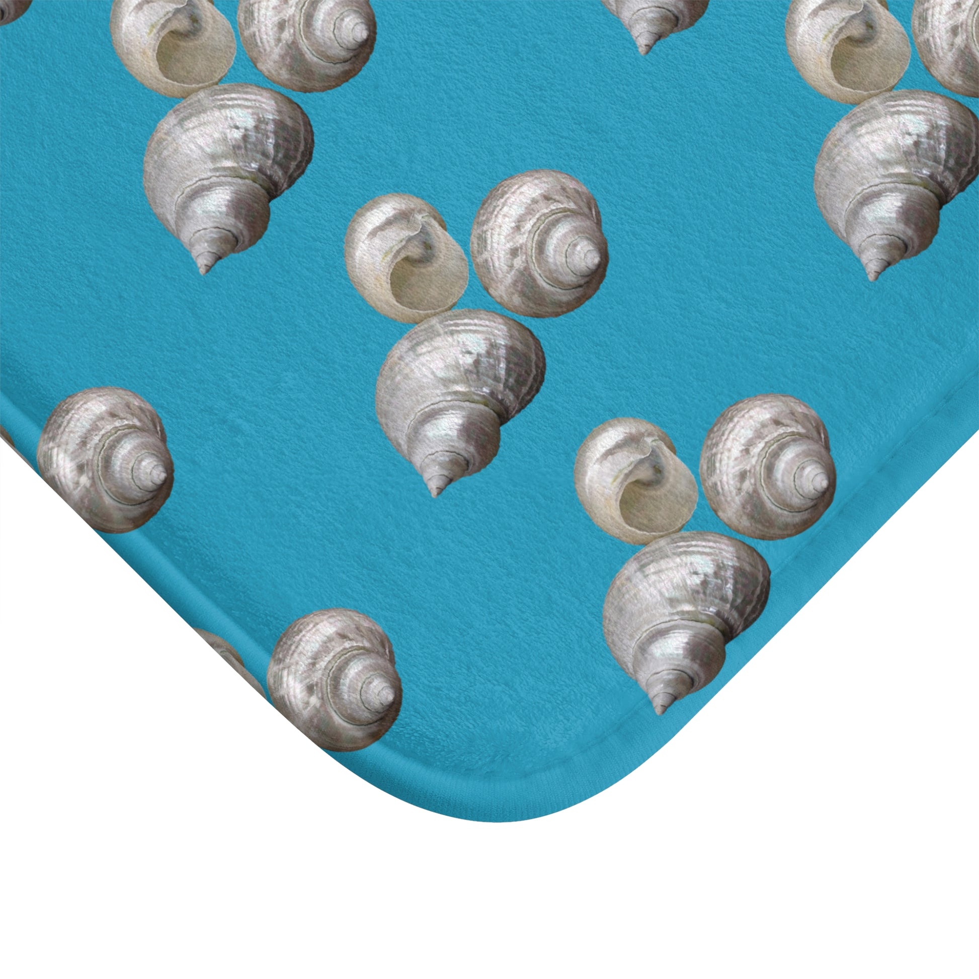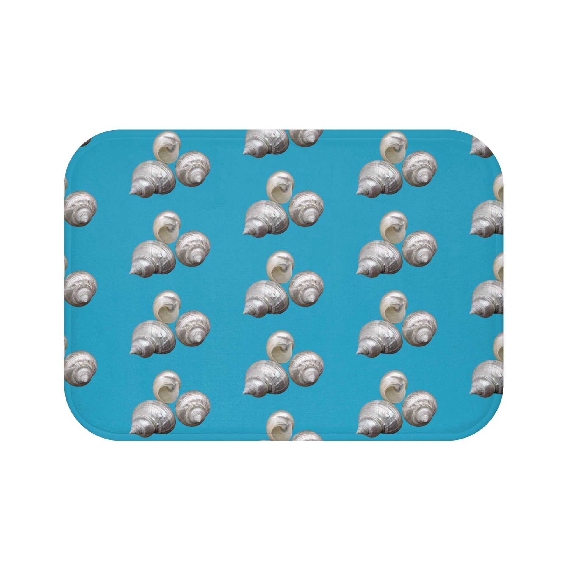 White Nautilus Shell/Turquoise Bath Mat, 2 Sizes - Tropical Vibes for Home Decor