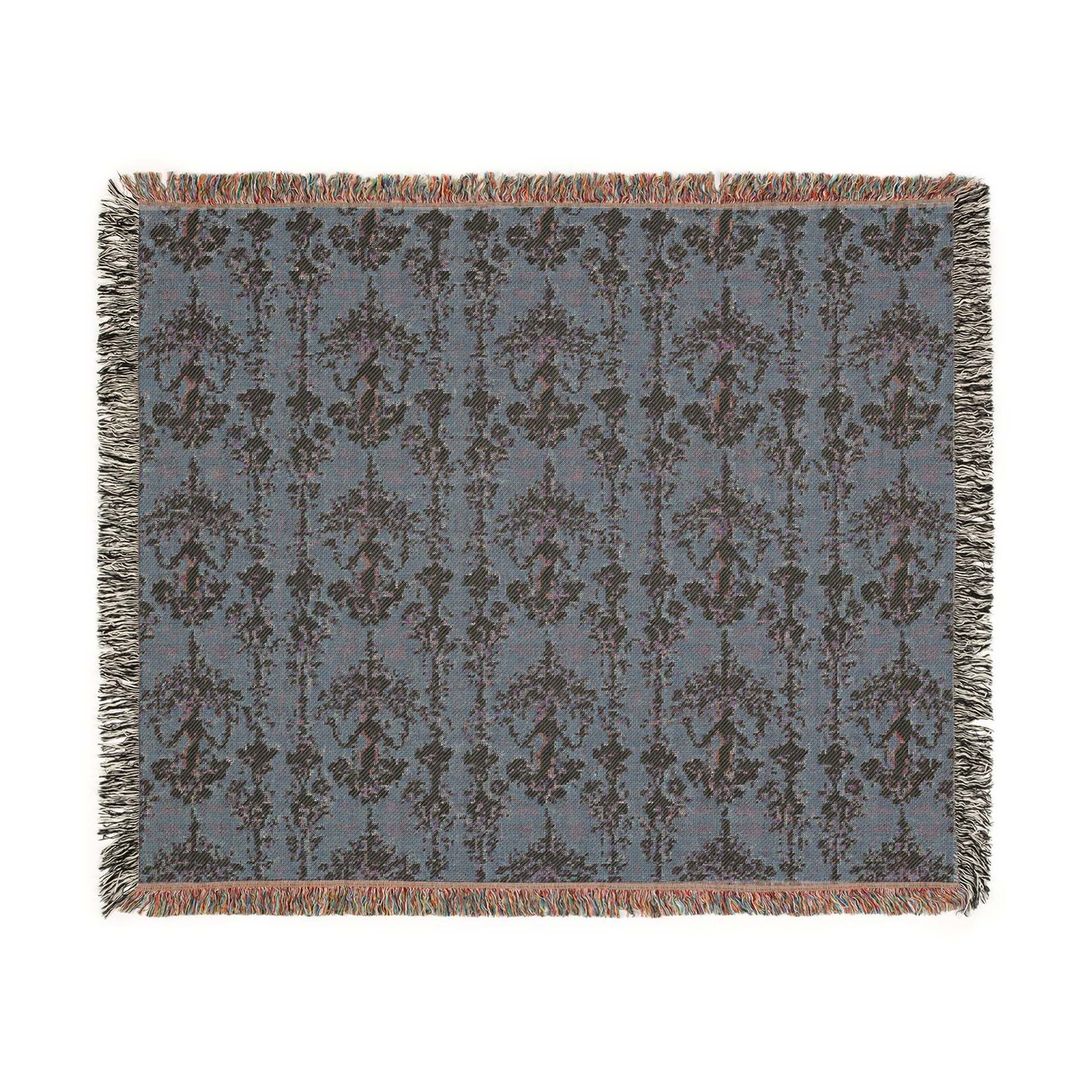 Introducing our stunning woven blanket, with tropical vibes, designed to add warmth and charm to any space. Toile pattern for tropical homes is a beautiful woman stylized as a FW pearl, surrounded by classical toile motifs. This blanket exudes a cozy, inviting atmosphere, making it perfect for snuggling up on chilly nights or adding a decorative touch to your living room. Whether draped over a sofa or laid across the foot of your bed, its vibrant patterns and colorful fringed edges bring a delightful energy to your home decor. Ideal for anyone who appreciates craftsmanship and style, this woven blanket makes a thoughtful gift.