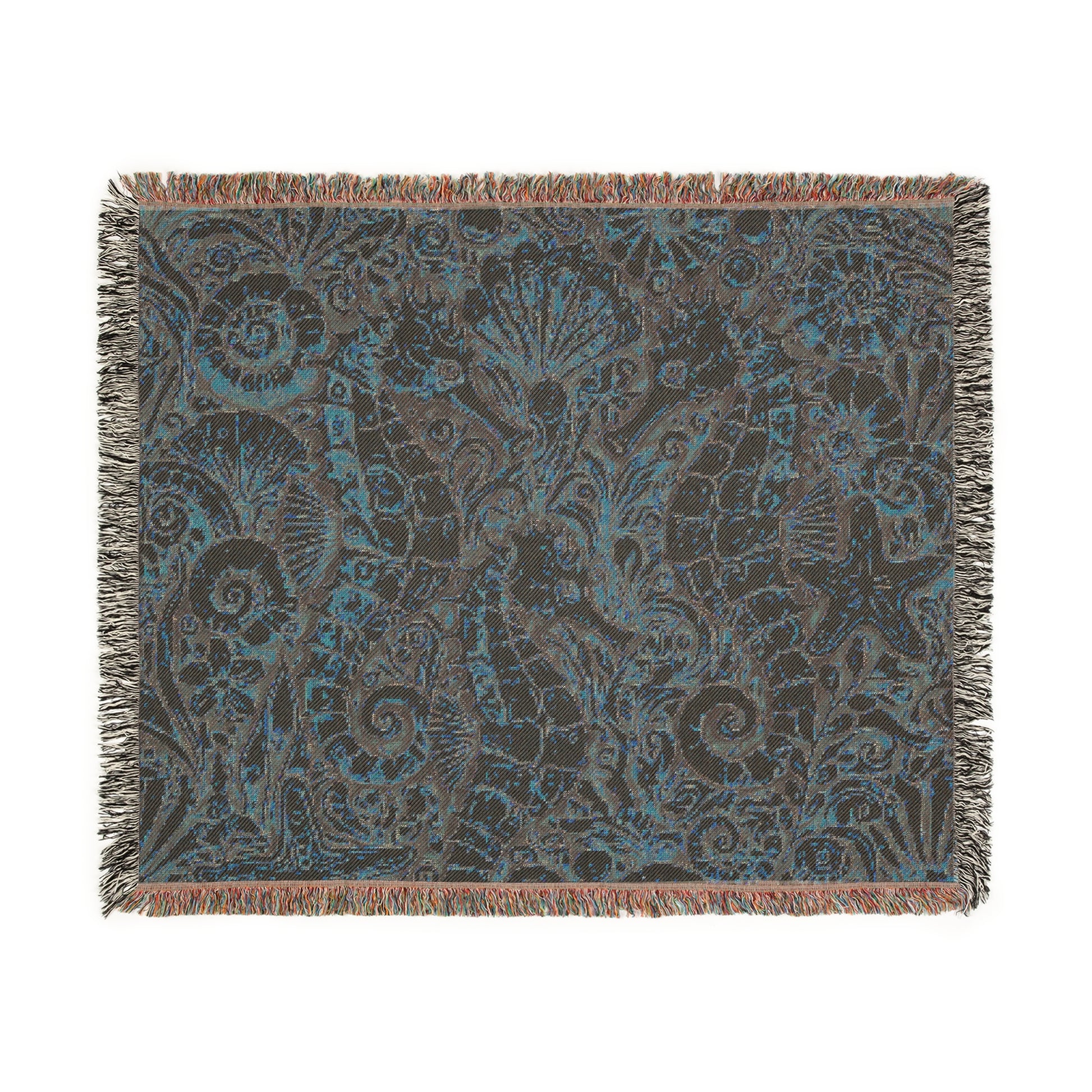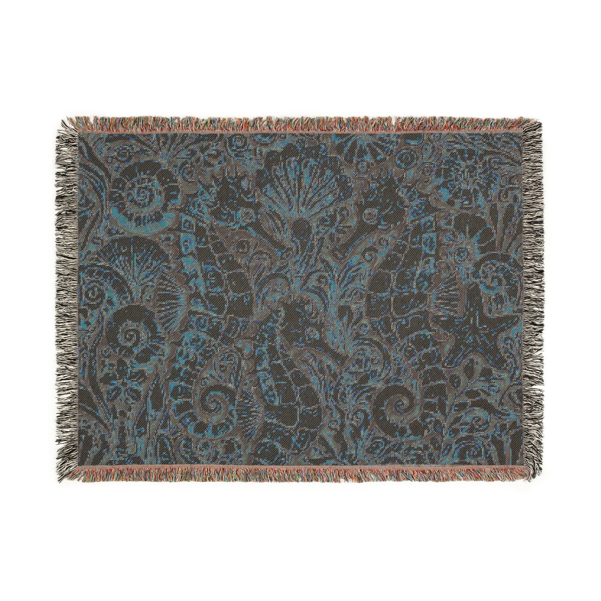 Introducing our stunning florala and fauna woven blanket, with tropical vibes, designed to add warmth and charm to any space with design of a trio of gorgeous seahorses for tropical homes. This blanket exudes a cozy, inviting atmosphere, making it perfect for snuggling up on chilly nights or adding a decorative touch to your living room. Whether draped over a sofa or laid across the foot of your bed, its vibrant patterns and colorful fringed edges bring a delightful energy to your home decor. Ideal for anyone who appreciates craftsmanship and style, this woven blanket makes a thoughtful gift.