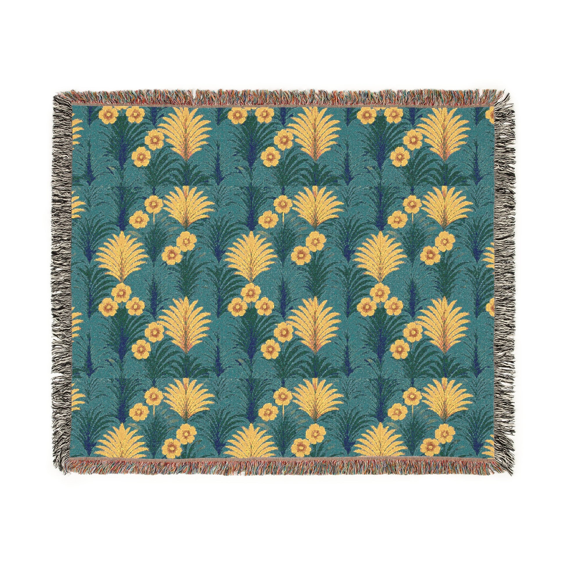 Woven Blanket, 3 Sizes - Tropical Home Decor / Sunrise Palms, Green