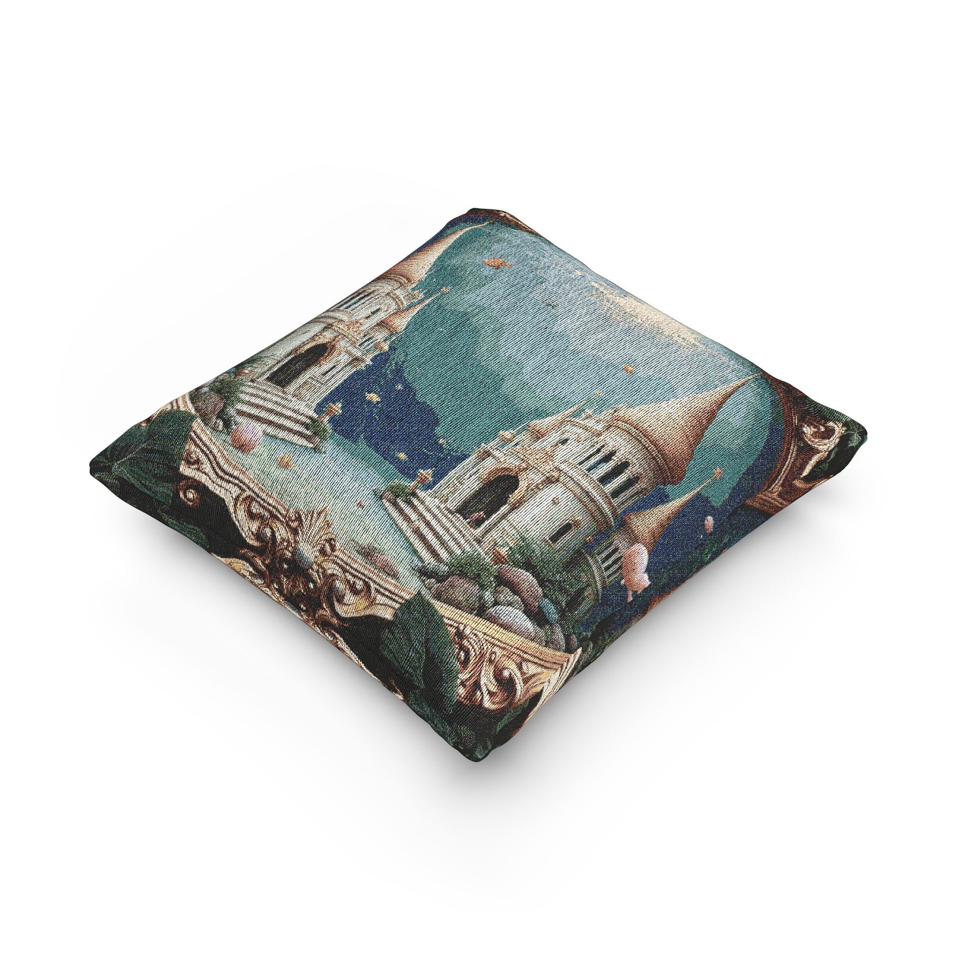Woven Pillow, 17"W x 18"L - Framed Mermaid Palace, Libyan Sea