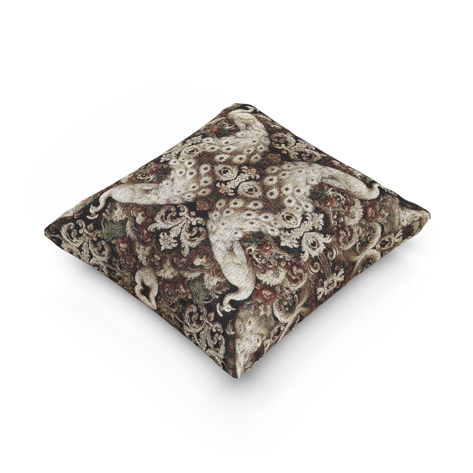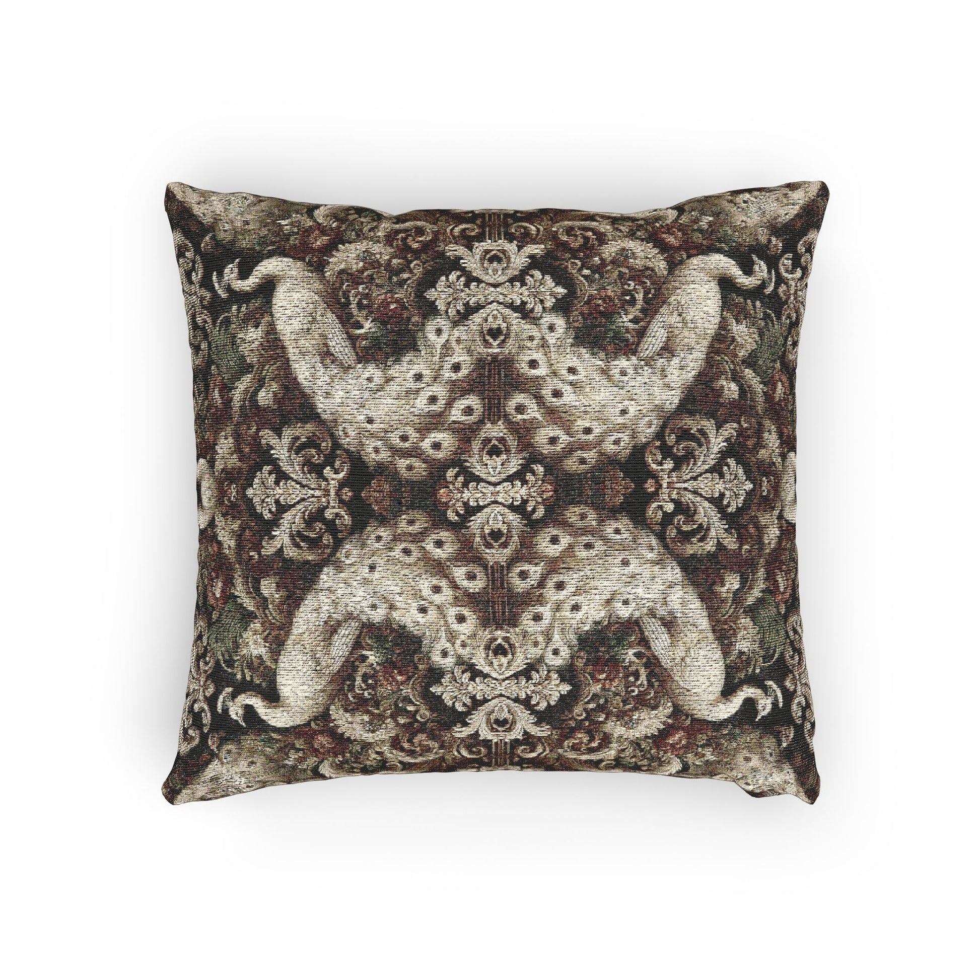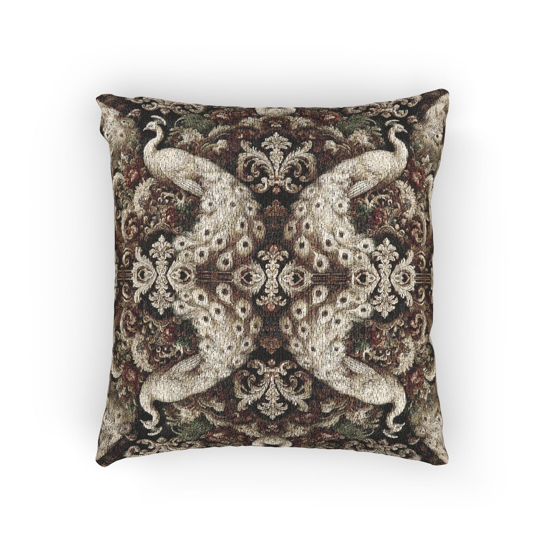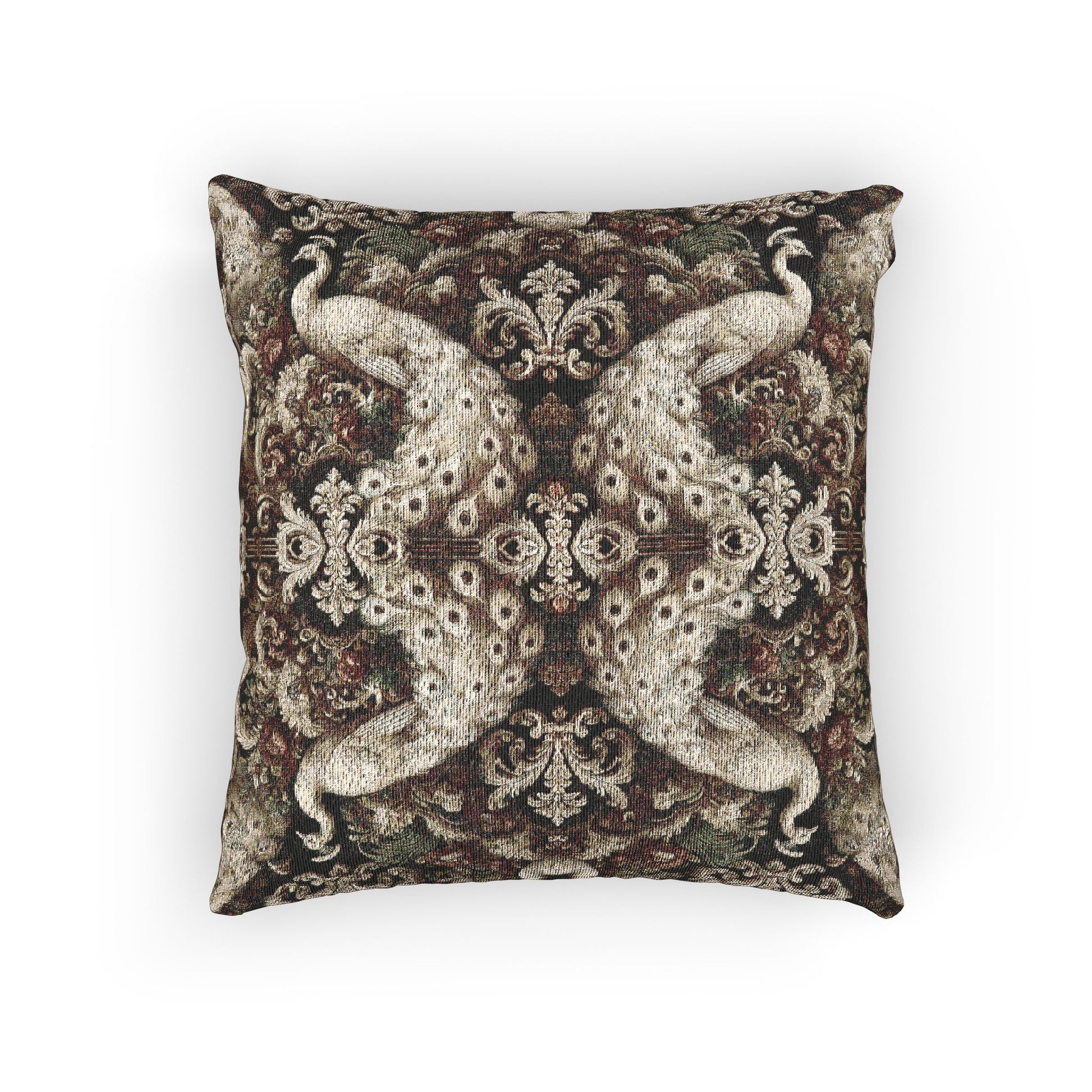 Woven Pillow, 17"W x 18"L ~ Kaleido White Peacocks