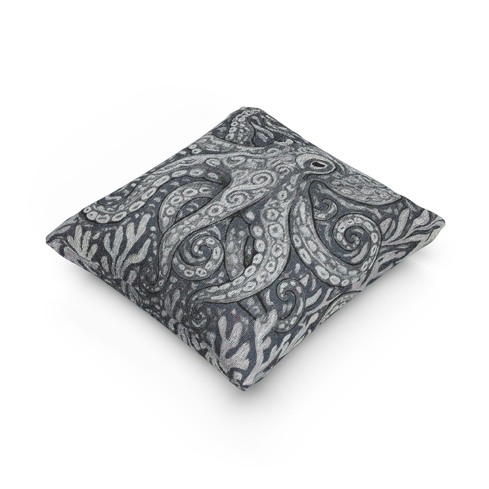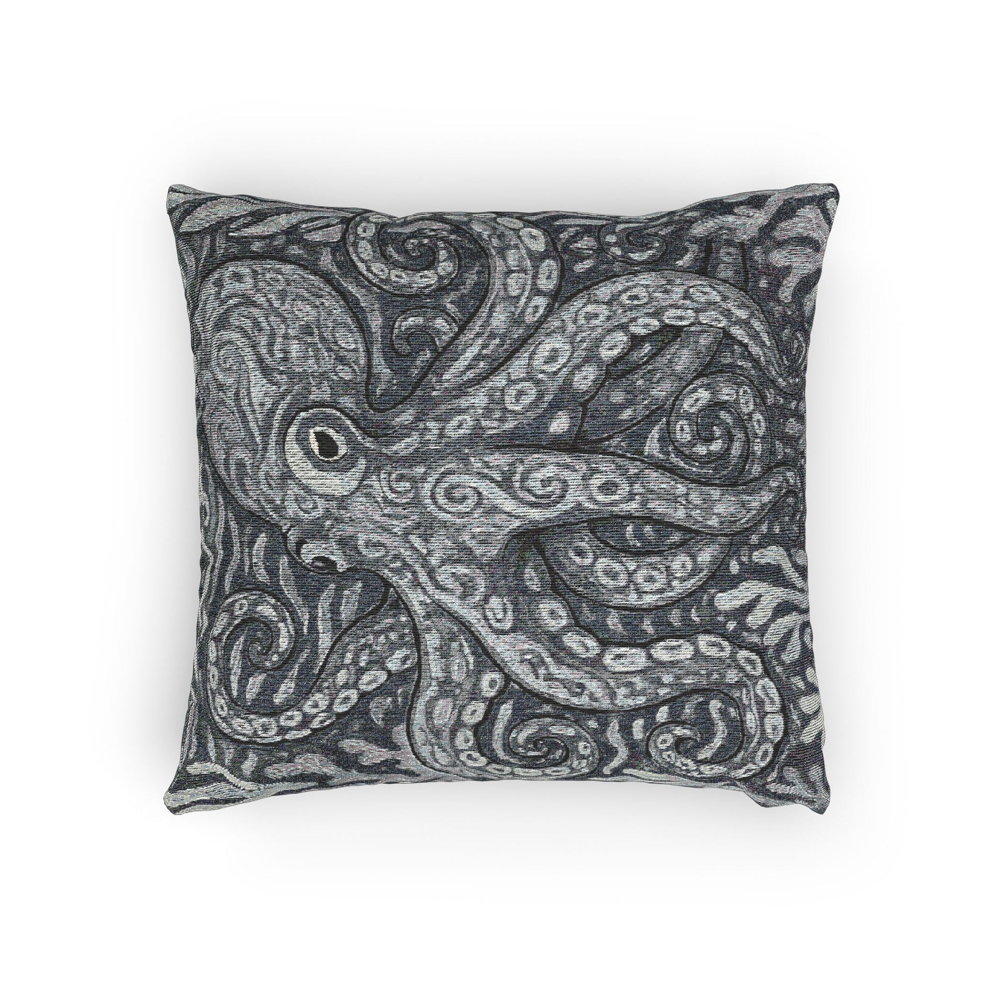 Woven Pillow, 17"W x 18"L ~ Octopus Kraken Joe, Slate
