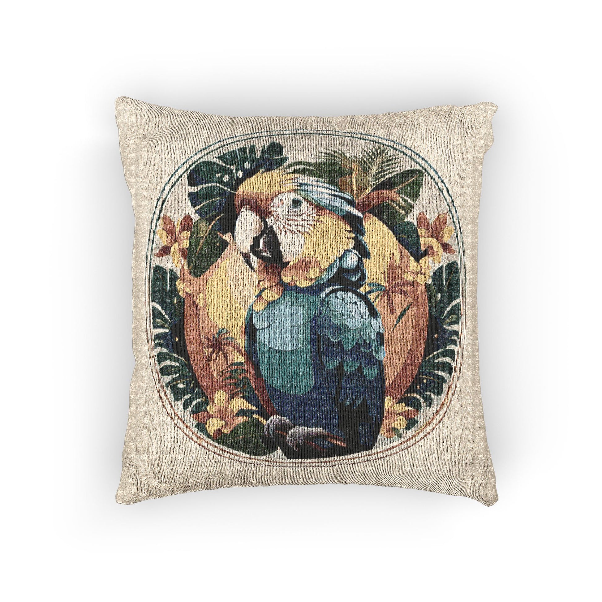 Woven Pillow, 17"W x 18"L ~ Rainforest Parrot