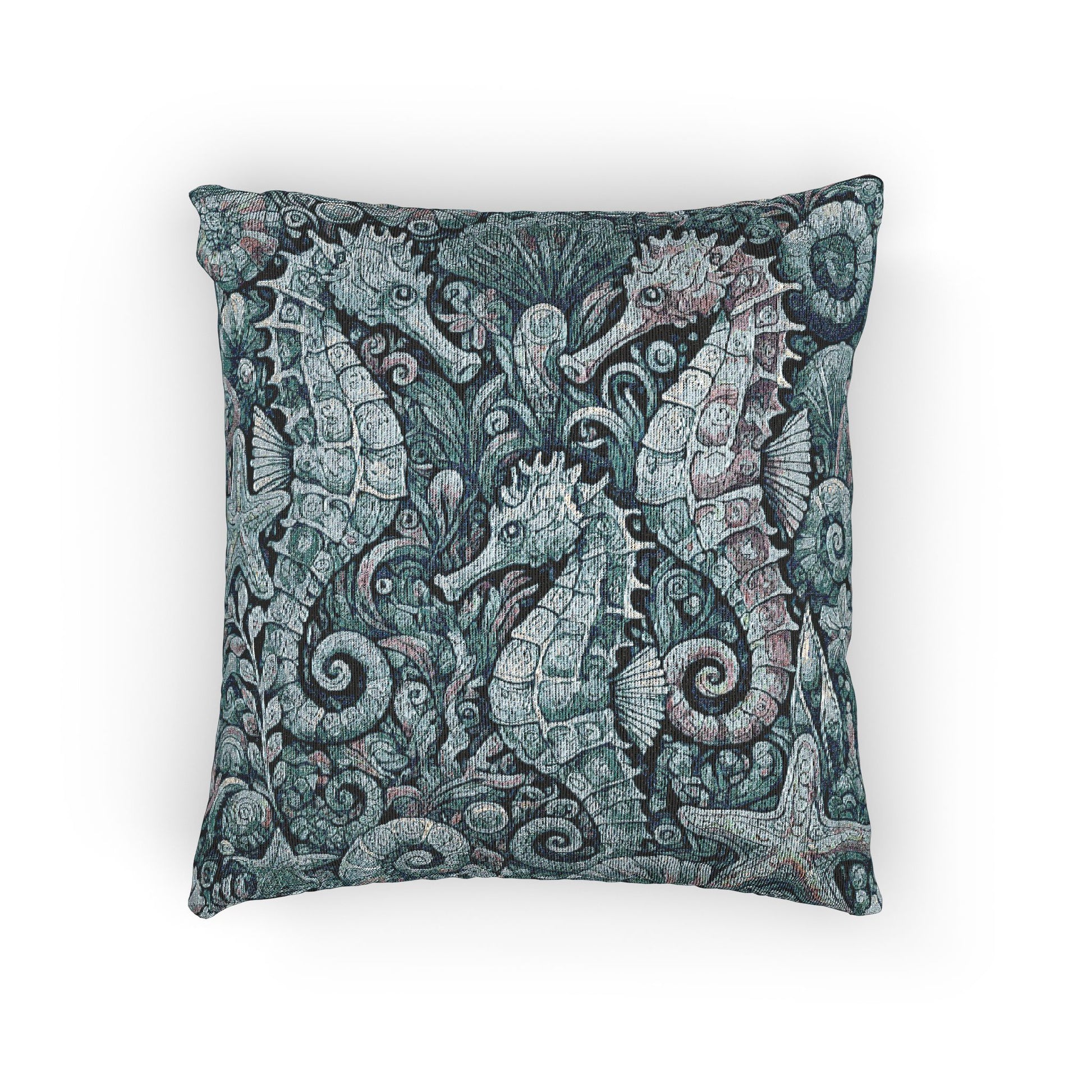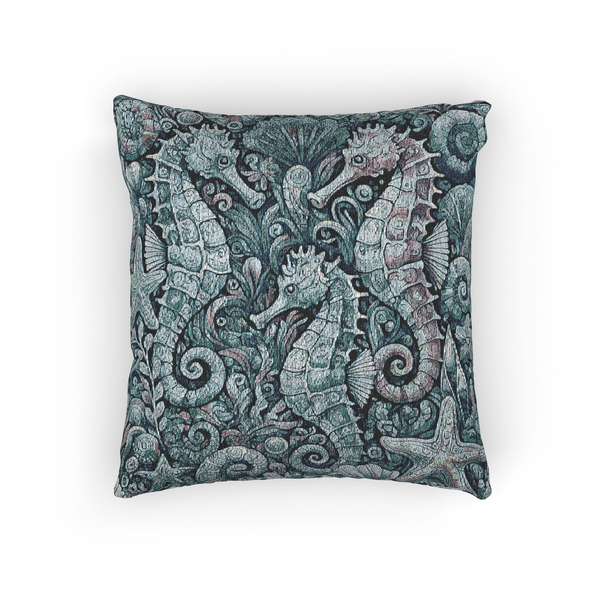 Woven Pillow, 17"W x 18"L - Seahorse Trio, Blue