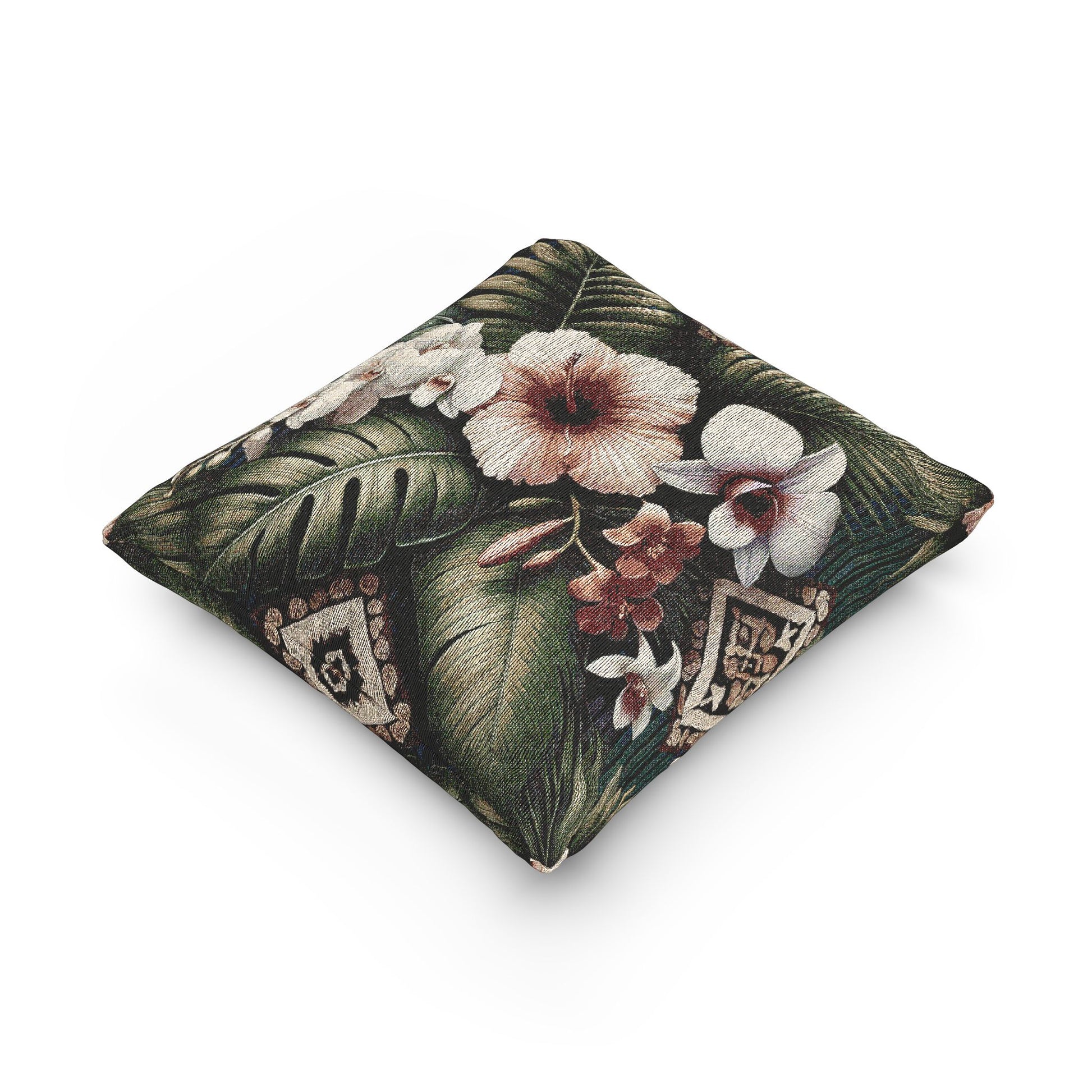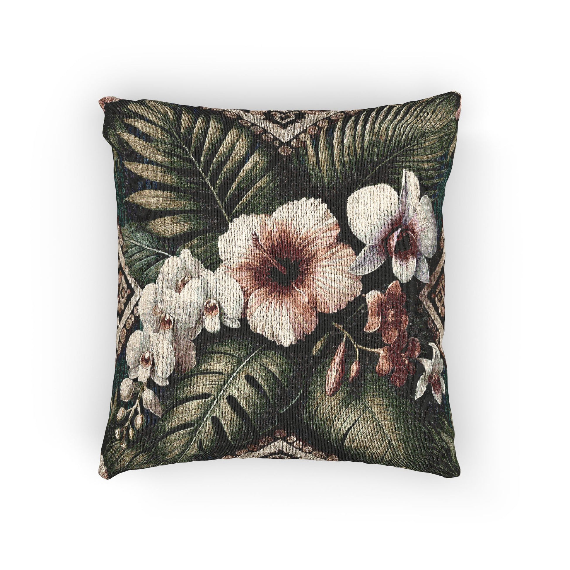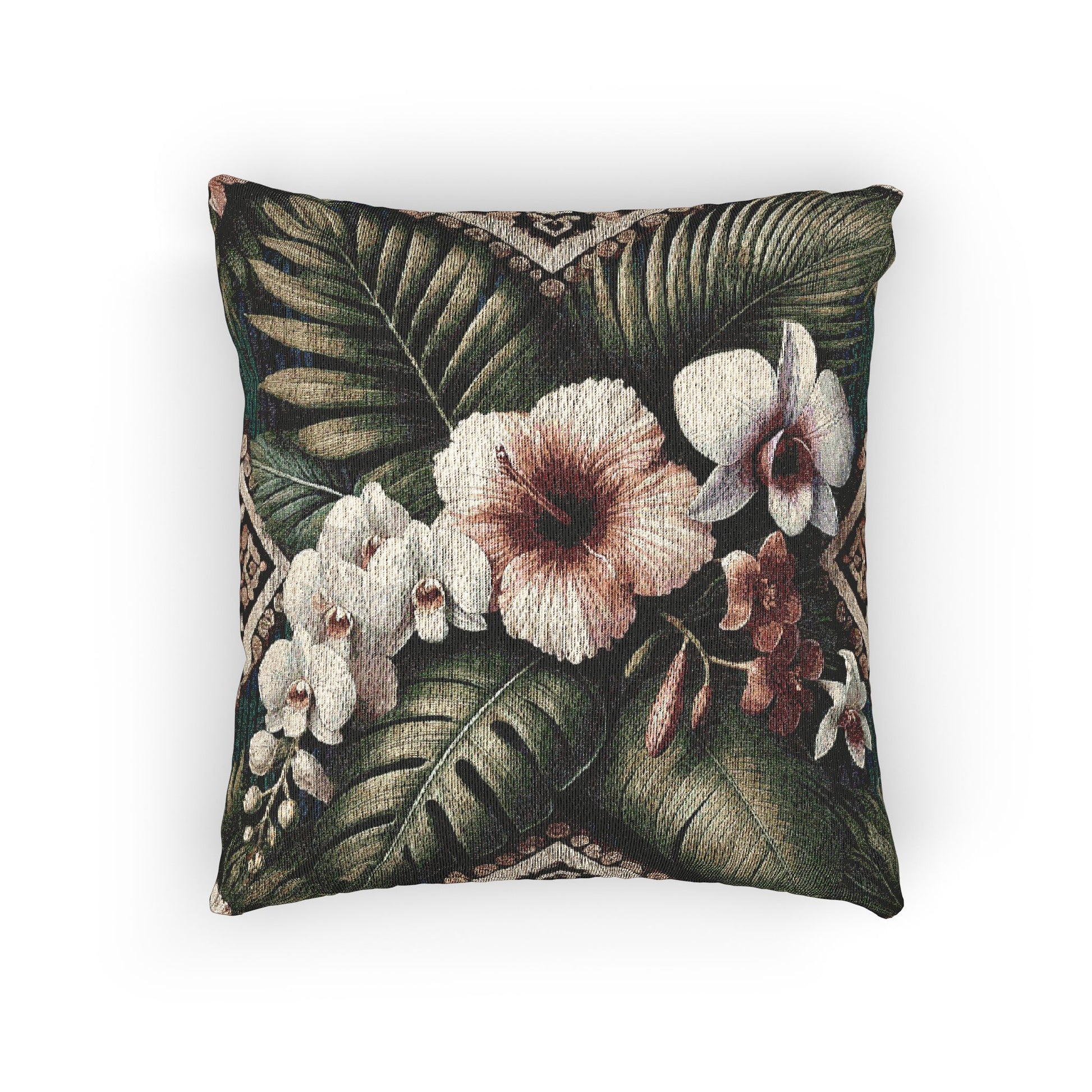 Woven Pillow, 17"W x 18"L - Tiki Orchids