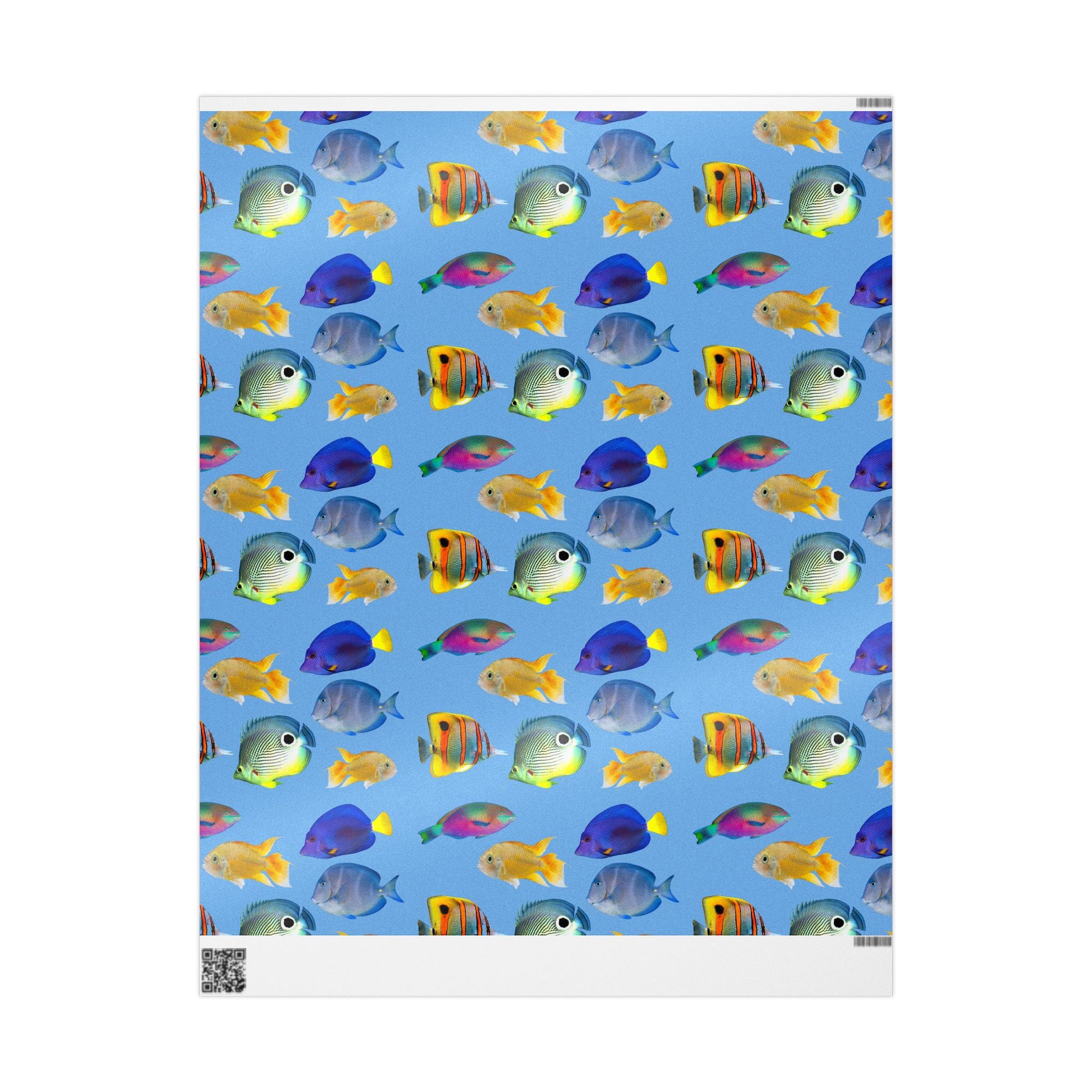 Wrapping Paper - Tropical Gift Wrap for All Occasions, 3 Sizes/2 Finishes / School of Fish, Lt. Blue