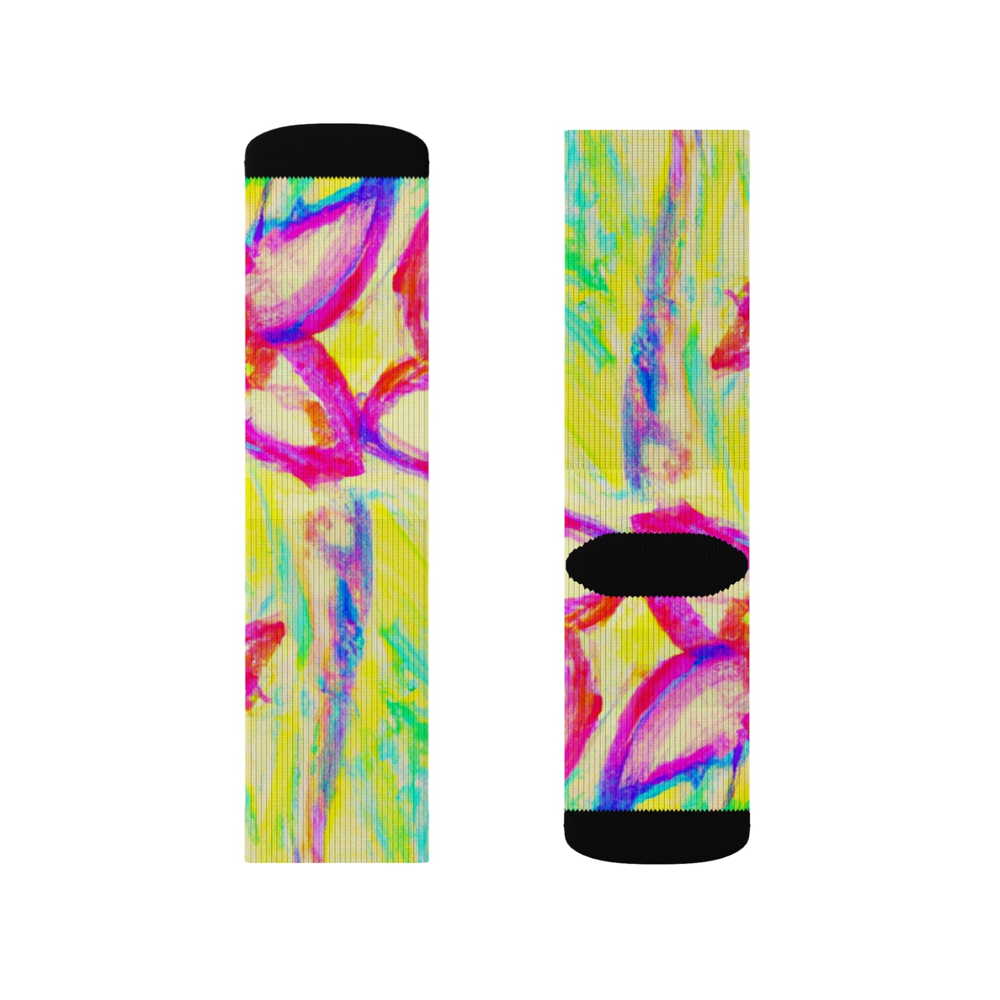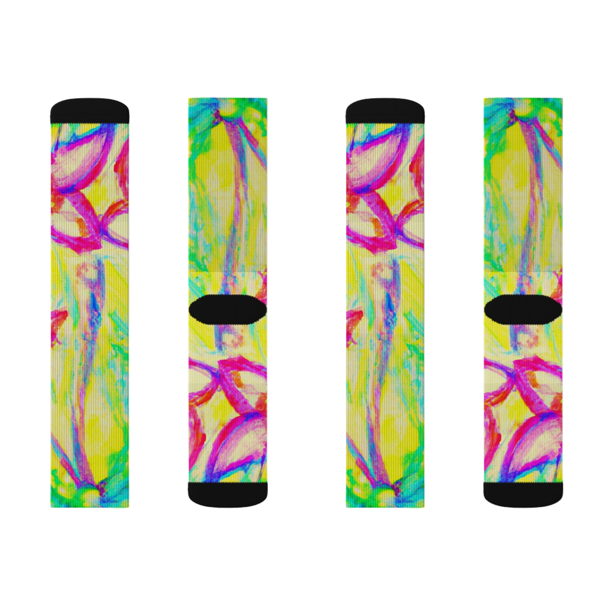 Yellow Tropical Doodles Sublimation Fleece-Lined Socks - Colorful Palm Tree/Flower Design
